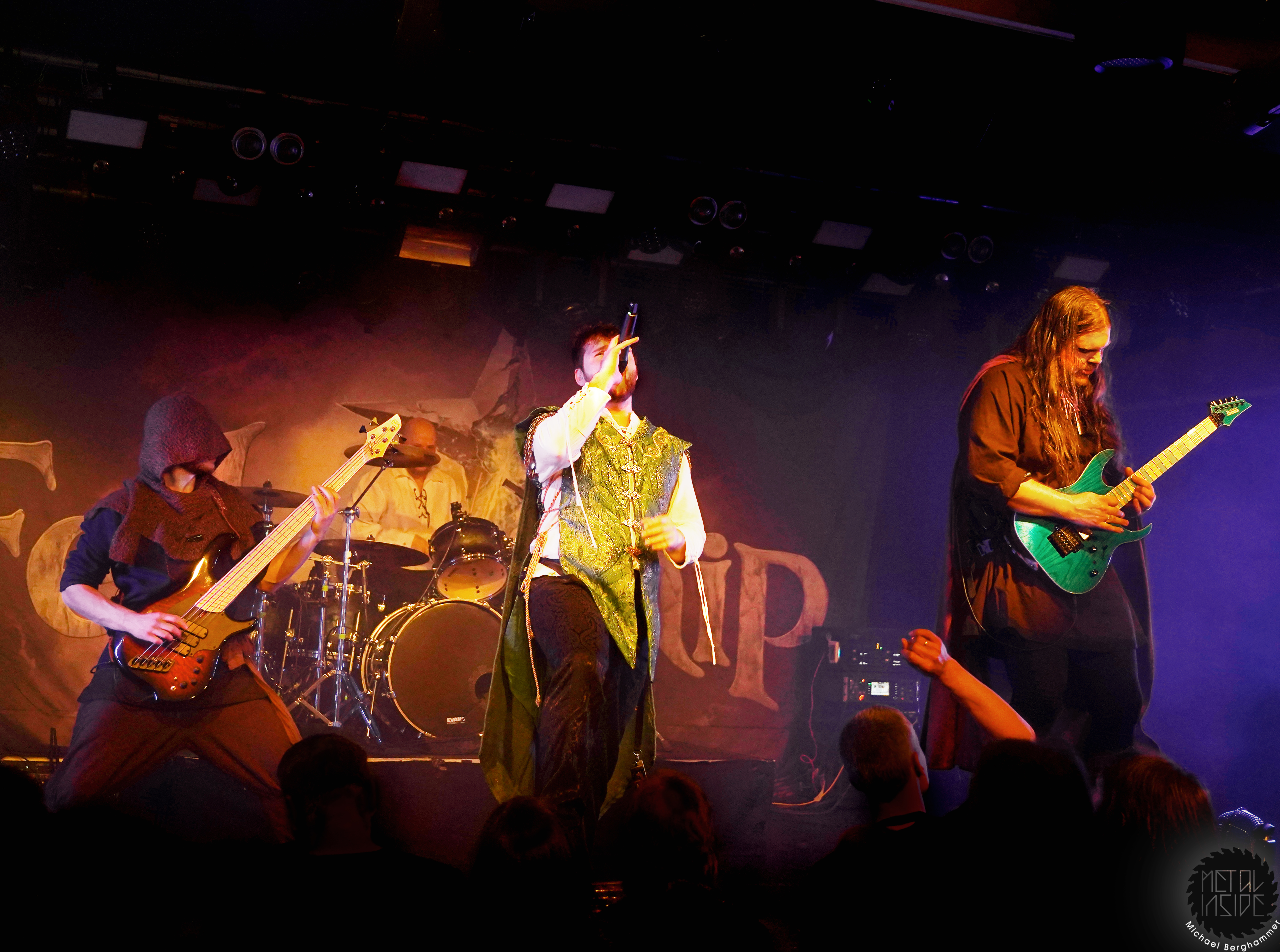 Als nächstes dürfen FELLOWSHIP ran und polarisieren natürlich. Einerseits können die 4 Hobbits auf eine wachsende Fangemeinde bauen und auch heute Abend gibt es einige Die Hard Supporter im Publikum, aber es gibt auch Stimmen, die das ganze als zu kitschig abtun. Mir macht sowas naturgemäß Spaß, auch wenn es mitunter natürlich ziemlich grenzwertig ist. Aber FELLOWSHIP sind sich dessen völlig bewusst und so gibt Herzchen für die Zuschauer, liebe und freundliche Ansagen und eine Euro Power Metal Hymne in Dur nach der anderen. Moll-Töne werden tunlichst vermieden. Aber in einer Welt, die am Fließband schlechte Nachrichten produziert, sind 45 Minuten heiles Auenland eine willkommene Abwechslung.
