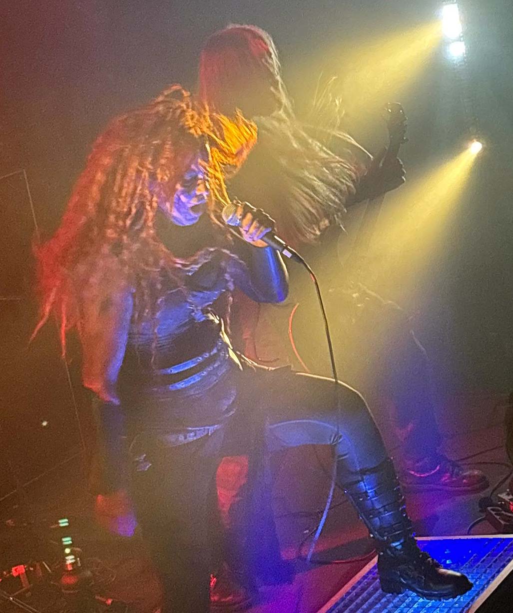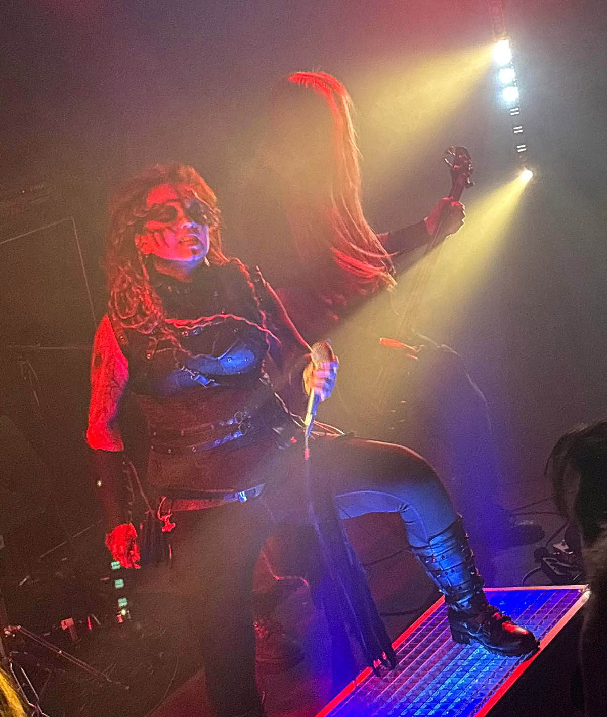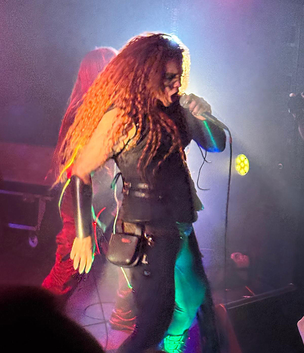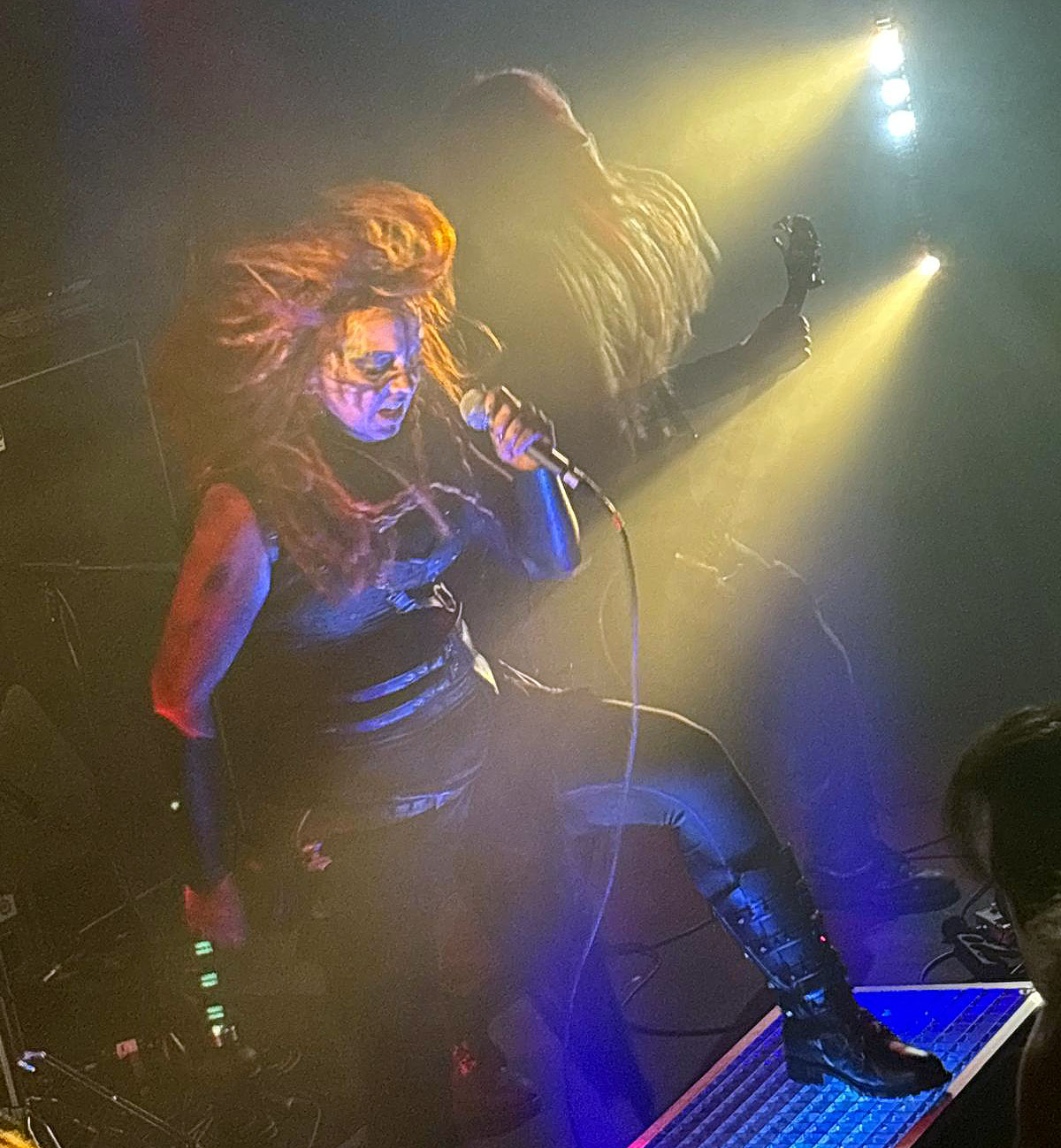 Zum sehr langhaarigen DISCREATION-Zupfgeigenhansel-Duo Schilling-Frick gesellte sich mit der ebenso üppig rot-belockten Skadi eine echte Hexe ans Mikro. Trotz ein wenig Nervosität aller Orten ob des Neuanfangs nach Morgoth-Grewe schwangen die Hanauer Hessen einen fetten Death-Metal-Hammer durch den mit knapp 100 Menschen weiter gut gefüllten Kellerklub. Wo bei den Tödlich-Terror Lokalmatadoren offene Ausgeflipptheit regierte, war jetzt Staunen angesagt. Und das lag nicht nur am Skadis amazonenhaften Lederoutfit oder an ihren großen Gesten auf dem nebelumwaberten Podest – es resultierte vor allem aus ihrer Stimme, die fast immer überzeugte – hoch gekreischt wie tief gegrunzt. Auch wenn sich einige (anwesende) Experten immer noch wundern, wie das alles sein kann. Blickfang hin oder her: Sebastian an der Gitarre und Peter am Bass bangten was das Zeug hielt, hatten ihre Instrumente trotz einiger anfänglicher technischer Probleme so gut im Griff wie der HSV zur gleichen Zeit die Ulmer Spatzen. Und so ballerten DISCREATION Kassel nicht nur mit "Blood Ritual" so mächtig einen vor den Latz, dass der ein oder andere die anschließende PartySan-WarmUp-Party nicht mehr schaffte. Soll aber auch gut gewesen sein.