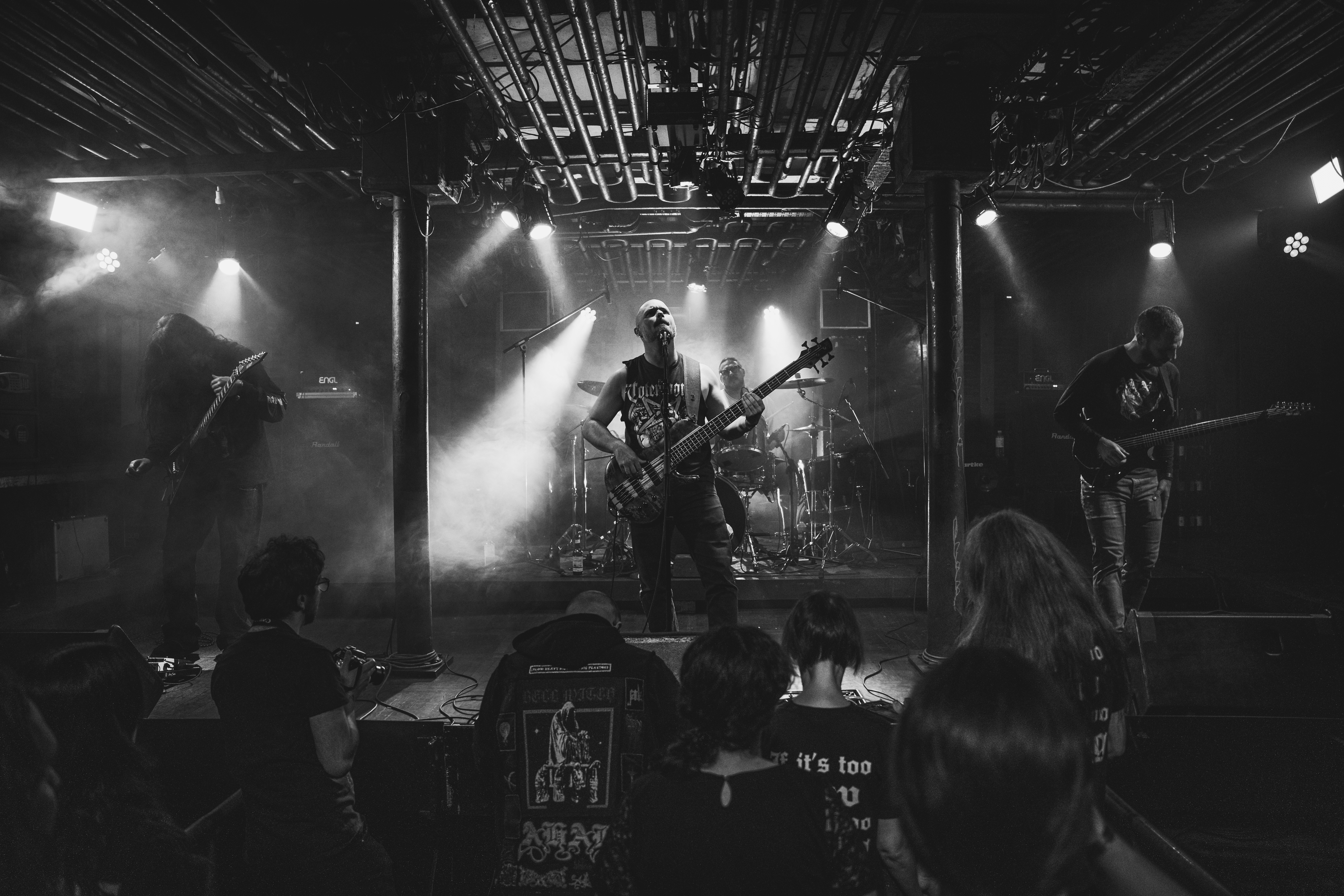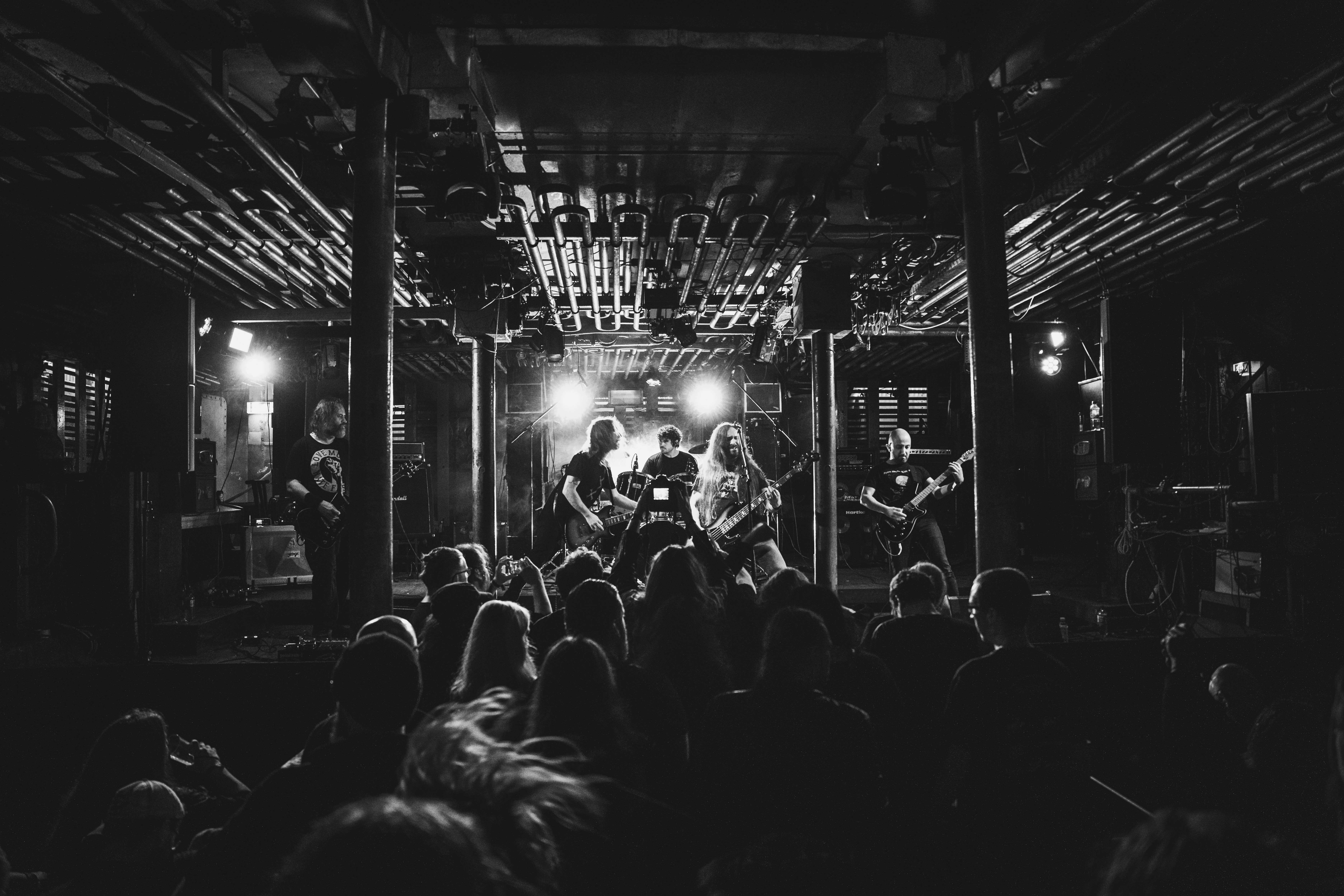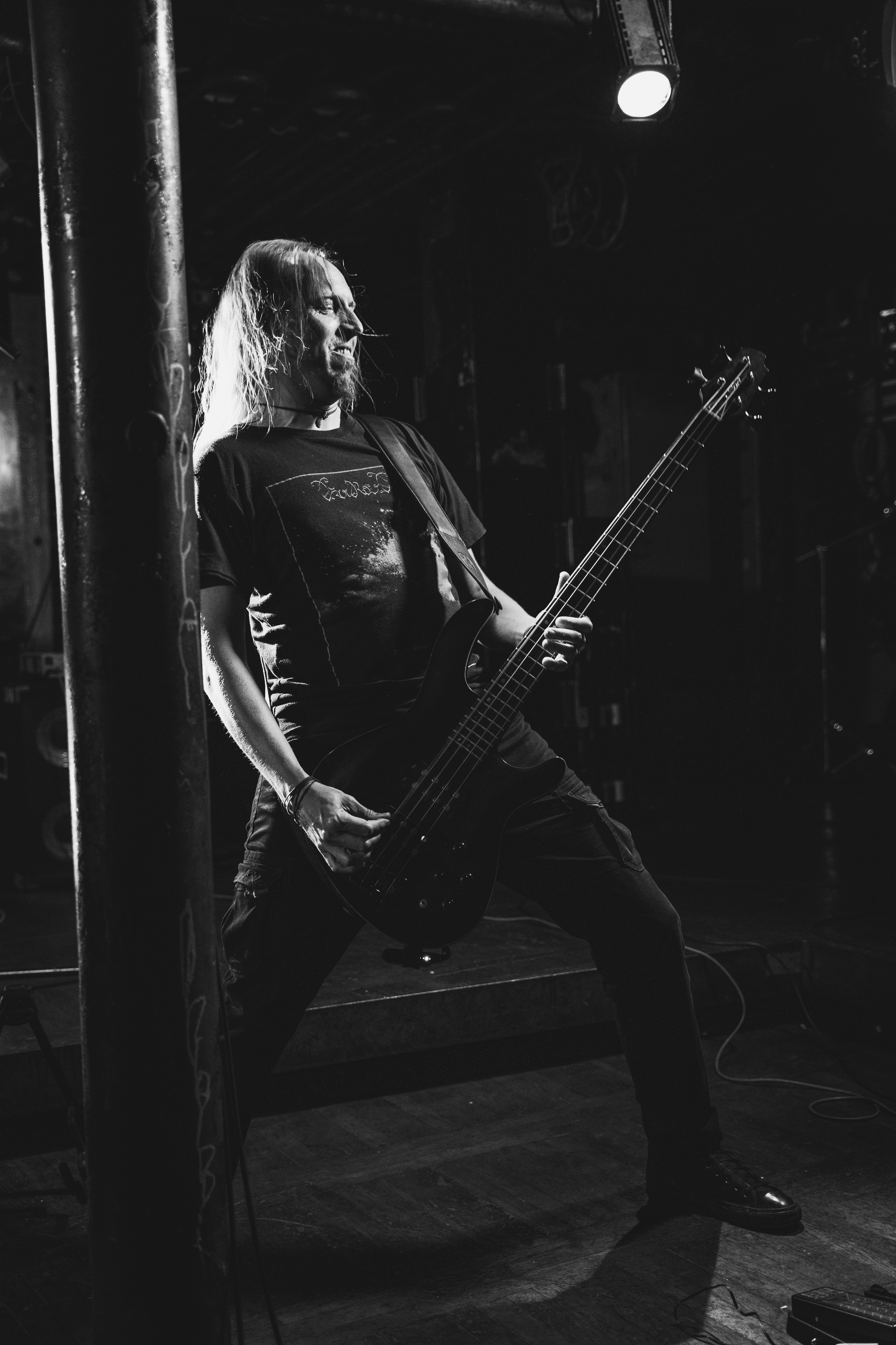 Fazit: Die schicksalhafte Fahrt durch die Welt des Doom auf der MS Stubnitz erschien wesentlich erfreulicher als die Jagd mit der Pequod. Doch auch auch der Weiße Wal im Roman „Moby Dick“ stand für ein Weltbild, das für ganz andere Emotionen und Einstellungen als Rache zeigte. Und so schien es auch in der Hamburger Hafen-City. Trotz offensichtlicher Trauer und Melancholie war die MS Stubnitz ein Hort der Lebensfreude. Denn: Die gesamte Spannweite des Doom ist so abwechslungsreich wie zig andere Genre zusammen! Die Internationalität des Billings und die Bereitschaft und Offenheit für wenig Geld große Anstrengungen zu unternehmen, um an dieser Premiere teilzunehmen, war großartig! Und das dann alles noch so gut klappte: Orga perfekt, Zeitplan eingehalten, Sound super, überzeugender Besuch, etwa 300 Zuschauer sorgten für tolle Atmosphäre, aber es war eben auch nicht zu voll. Location einmalig. Das Wetter erlaubte Pausen an der frischen Luft an Deck. Dazu das Rahmenprogramm mit Denis und seinem Label Meuse Records, Merch von allen Kapellen, Kunst von Ophis-Ole, lecker Störtebier und Sekt-Mate für die Feinschnacker. Kritikpunkte gab es so gut wie keine. Manch einer vermisste wohl ein kulinarisches Angebot. Das war aber aus organisatorischen Gründen nicht möglich. Und über allem standen natürlich die ohne Ausnahme guten Auftritte der Bands. Was bleibt, ist die Hoffnung auf eine zweite Auflage in 2026 und der große Dank ans Orga-Team Bine und Olli und deren Unterstützer. Und an Marvin (https://www.instagram.com/marvinn_h1_Concerts/) für die tollen Bilder in schwarz-weißer Farbe. PS: Eine ähnlich gelungene Veranstaltung verspricht das „Haunting the Castle 6“, das im Februar im belgischen Château Avouerie in Anthisnes geplant ist.