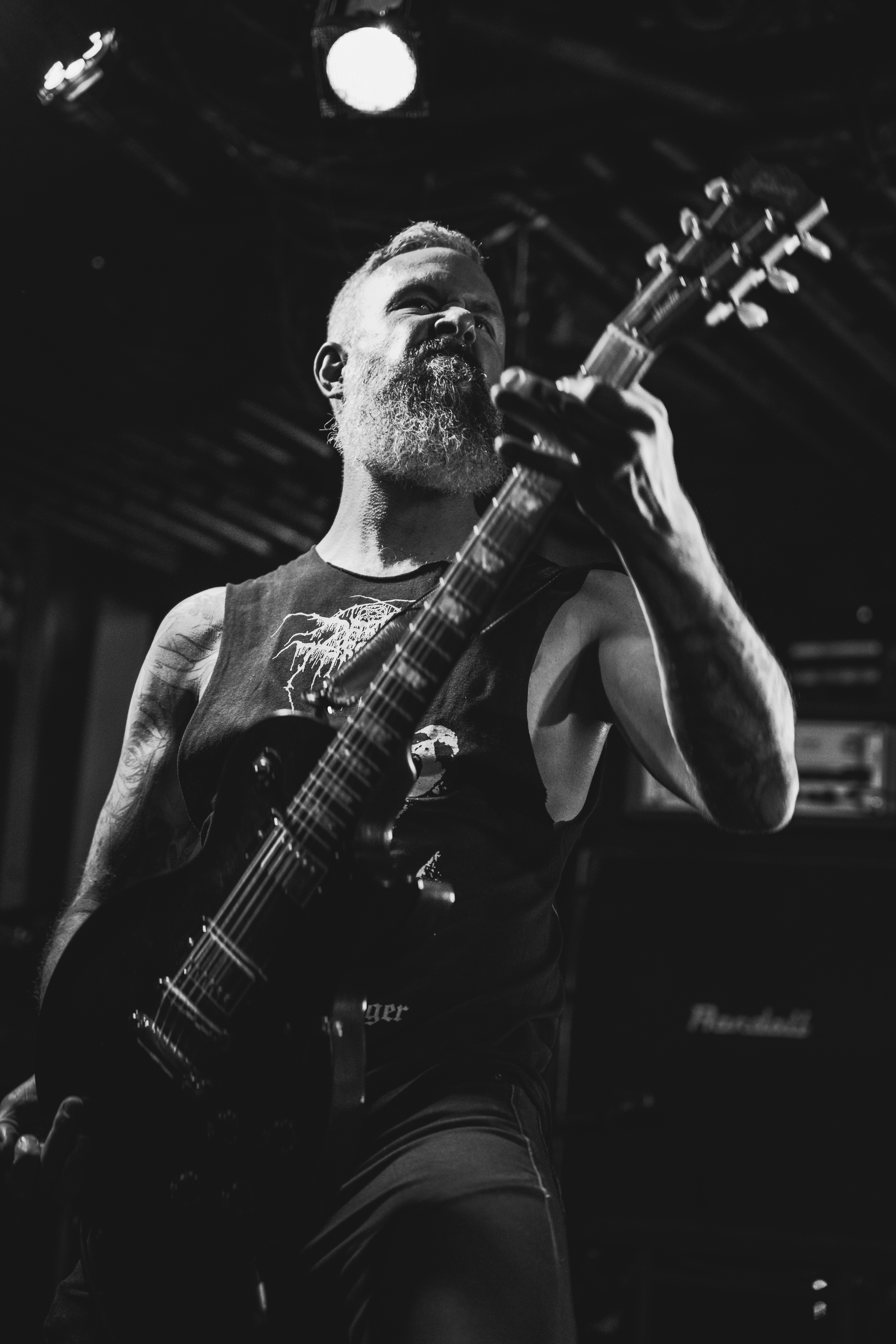 Die Griechen DECEMBERANCE haben nicht nur den längsten Bart am Start, sondern auch den längsten Song. Denn ihr Auftritt wirkt wie genau ein Lied. Sie erzeugen den perfekten Soundtrack für eine Doom-Metal-Doku. Immer cool, immer geil, egal, wo du einsteigst. Das kann auch ein Nachteil sein, wenn es jemand als Beliebigkeit auslegt. Die anwesenden Doom-Fans an Bord sind davon weit entfernt und schwelgen in den elegischen Weisen. Auch wenn es immer mindestens melancholisch und sogar sehr dunkel ist – oder gerade deswegen.