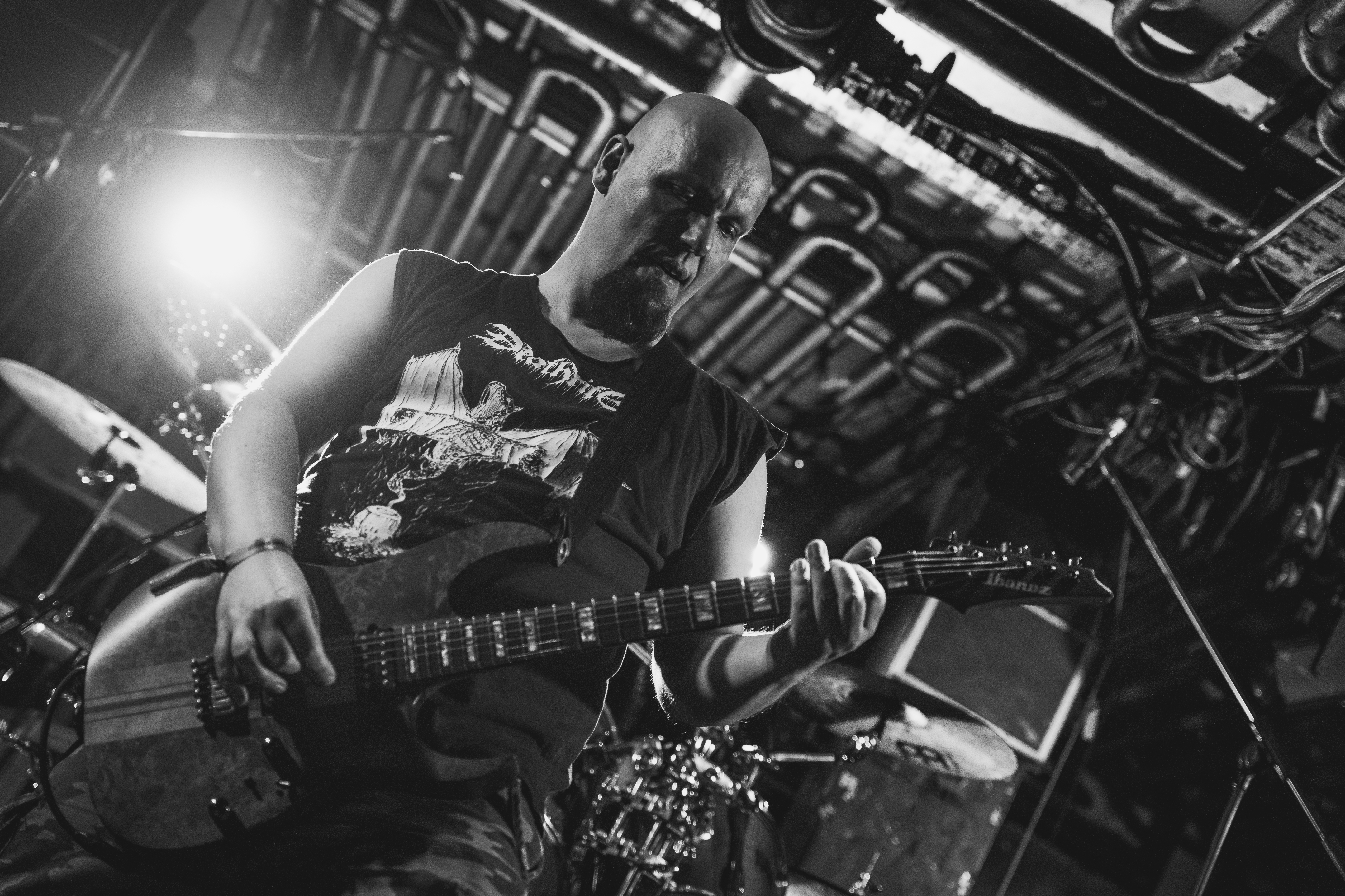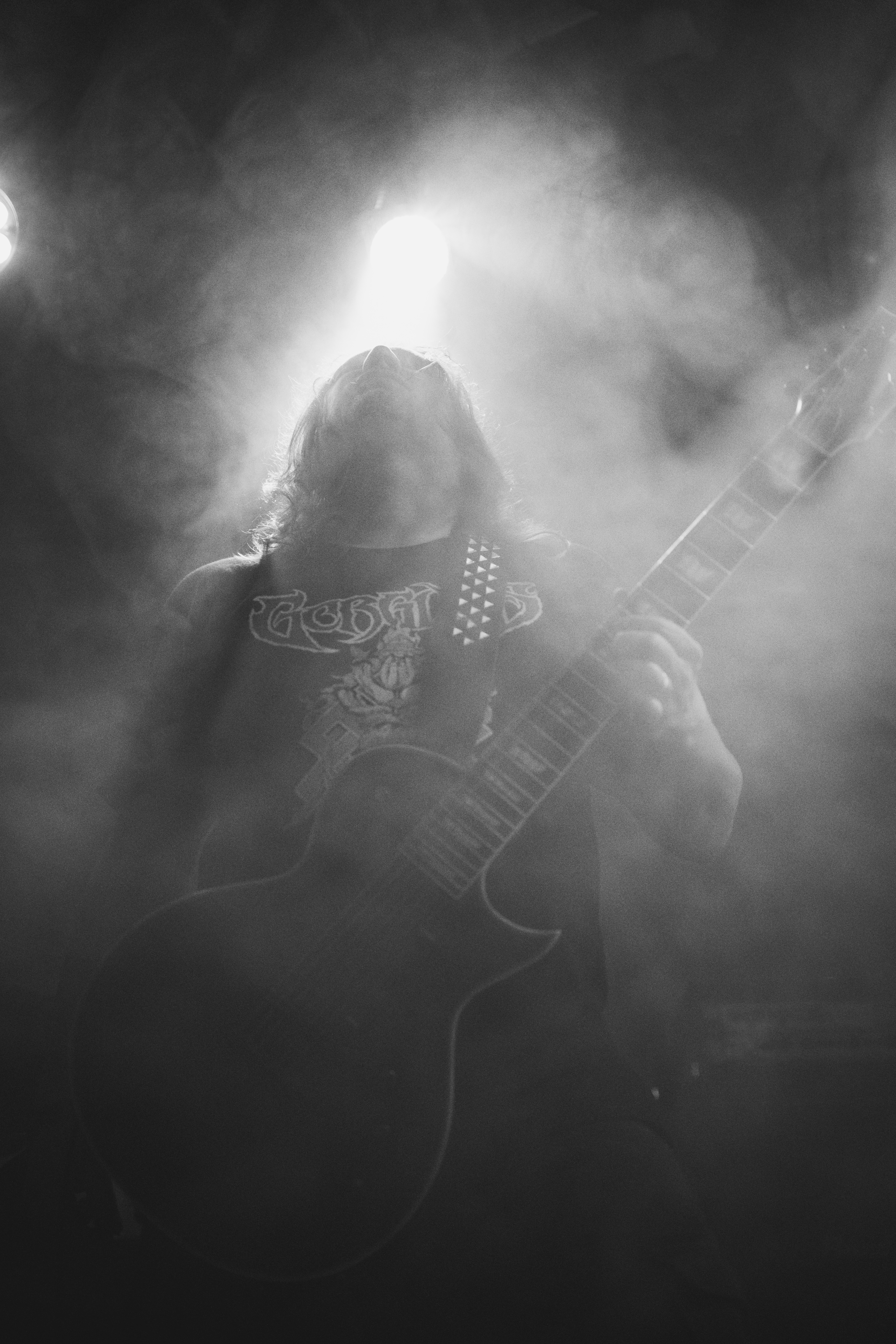 Die Lokalmatadore OPHIS haben nicht den längsten (Bart), aber dafür sind sie am schnellsten (Im Sinne von Geschwindigkeit) und am härtesten (im Sinne des Heavy Metal). Sie beginnen mit „Godforsaken“ und erfreuen damit nicht nur Veranstalter Olli, der am Entstehen des Songs bei Ophis seinerzeit mitgewirkt hat. Sie spielen zwei neue Songs, Phil macht eine Ansage gegen den braunen Scheiß im Bundestag, der auch ohne Ost-Diss gut angekommen wäre und entschuldigt sich für zu hohes Tempo. Aber genau das ist gut so, im Sinne von Abwechslung und Heavyness. OPHIS sind an diesem Abend einfach mal wieder total überzeugend – wie erstaunlich, dass sie scheinbar immer besser werden: tight wie eine Stretchjeans beim Thrasher, schwer wie ein 40-Tonner-Diesel auf der A7. Und doch wirken OPHIS so nonchalant, wenn sie ihre Geschosse unter Deck verteilen. Gekonnt ist gekonnt. Einfach geil. OPHIS ist der Monstertruck des Doom Death.