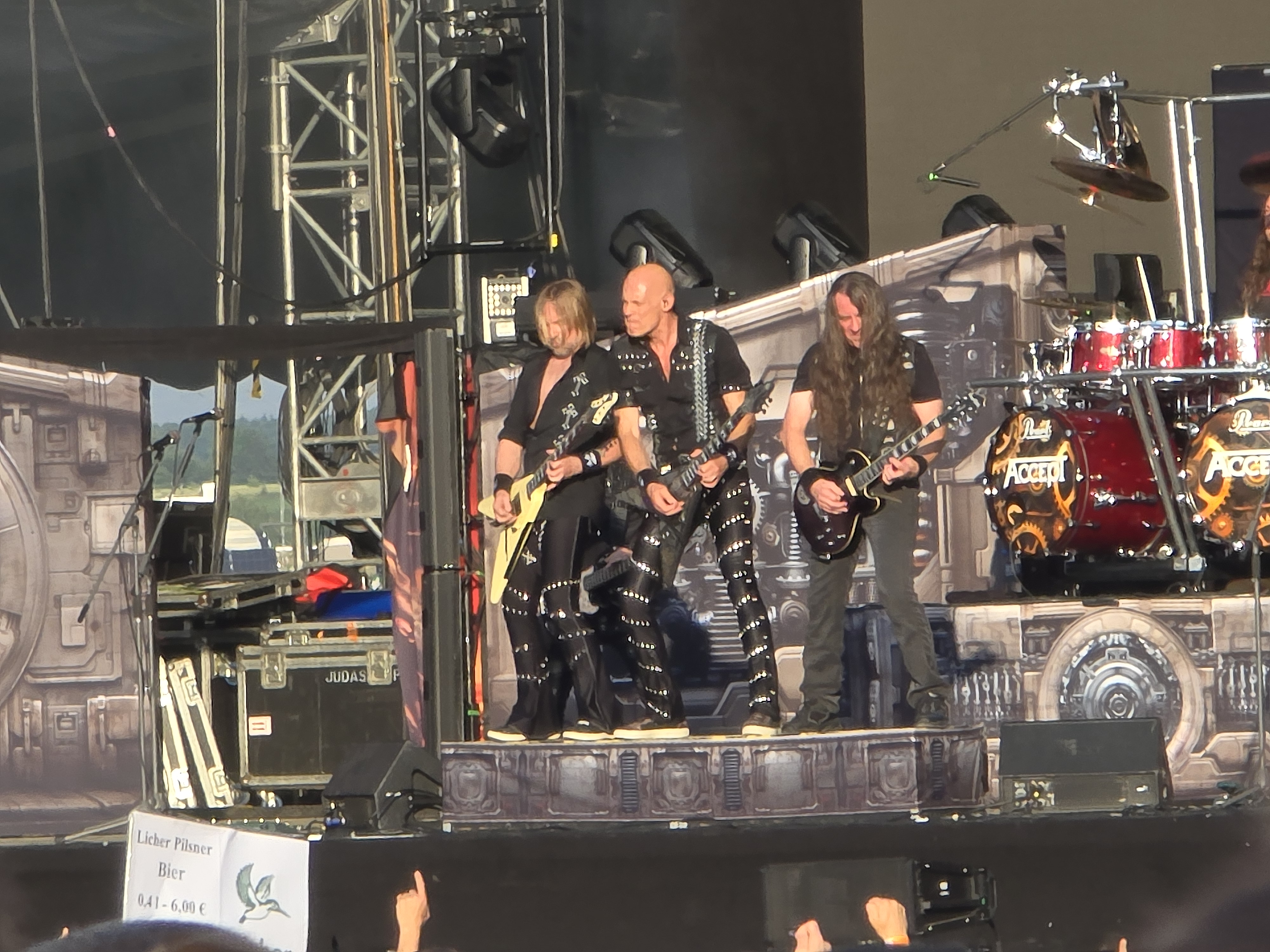 Ca. 8000 Menschen strömen bei gleißendem Sonnenschein in die Stadtwerke Arena in Bad Vilbel, um im Rahmen des Hessentags gleich drei Heavy Metal Legenden zu bestaunen. Das Open-Air Gelände liegt verkehrsgünstig gelegen und trotz einiger kleinerer Staus komme ich mehr als rechtzeitig an.