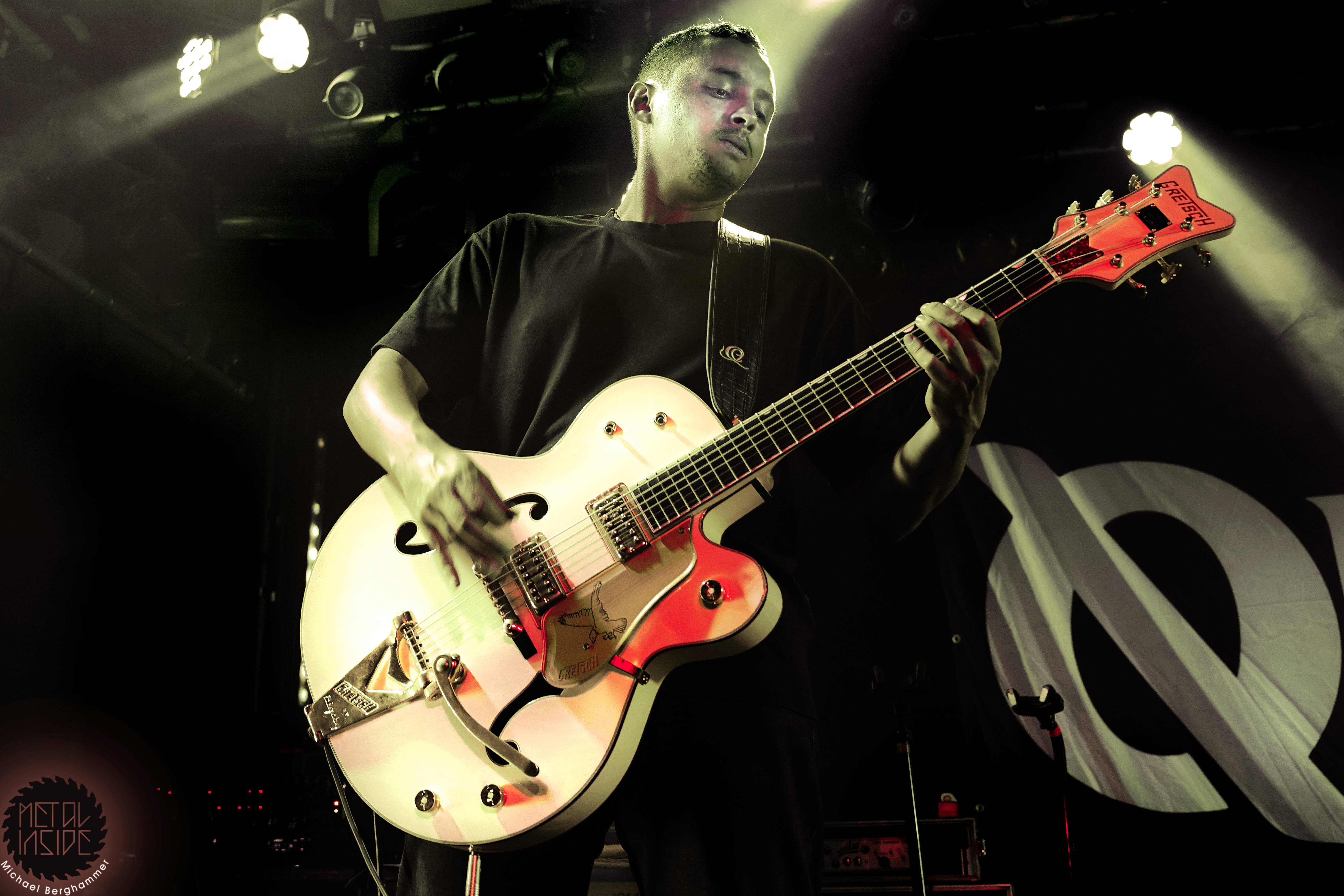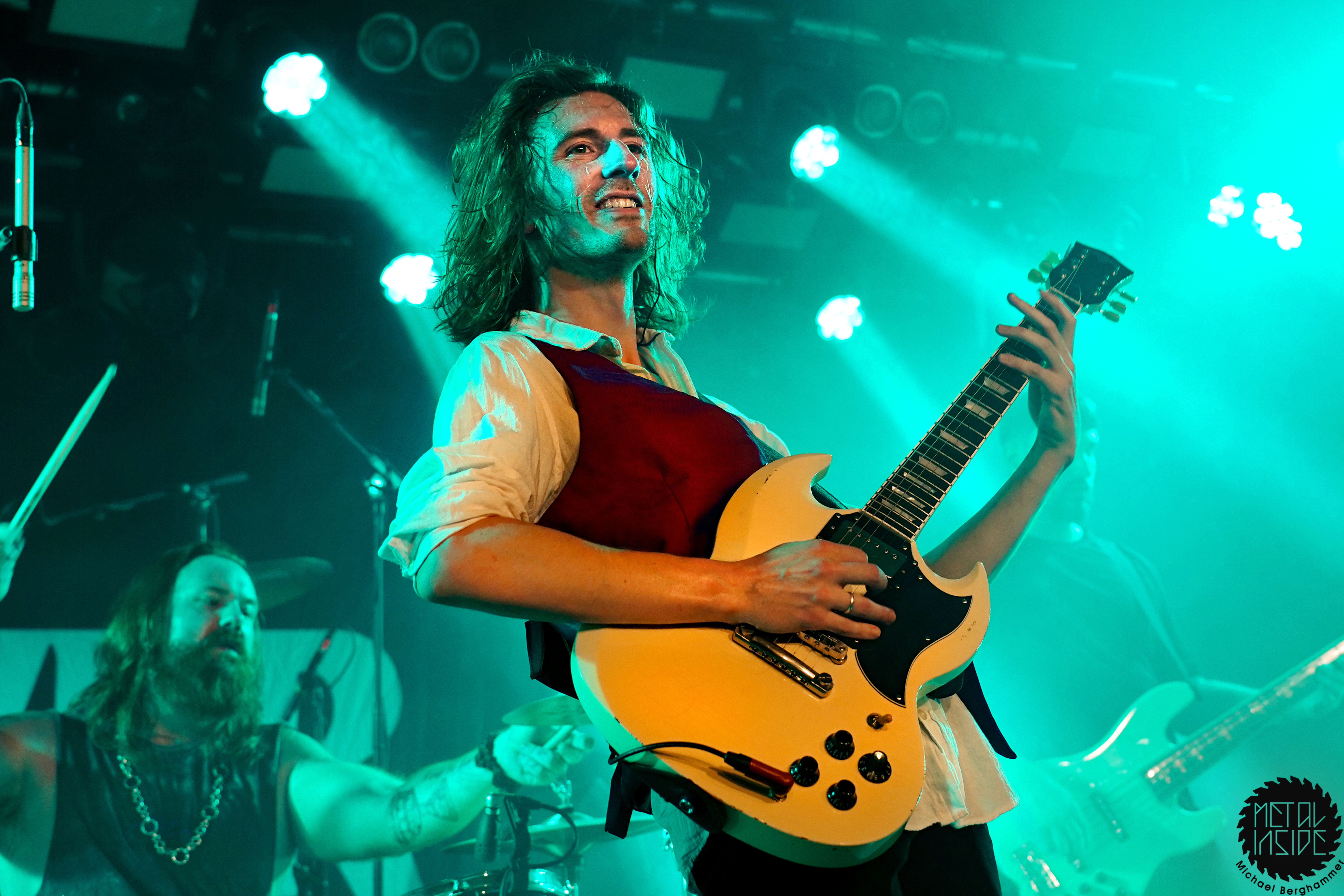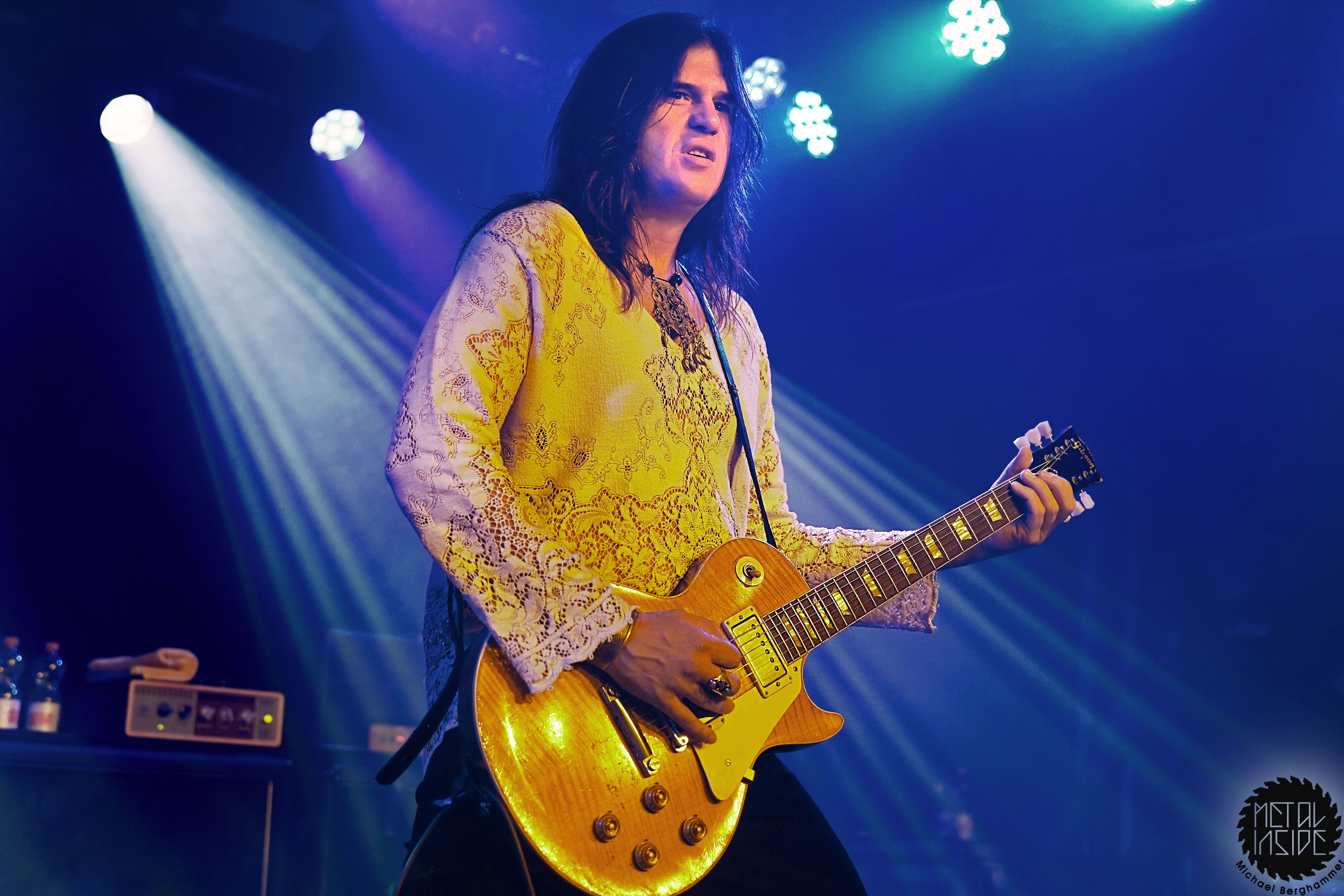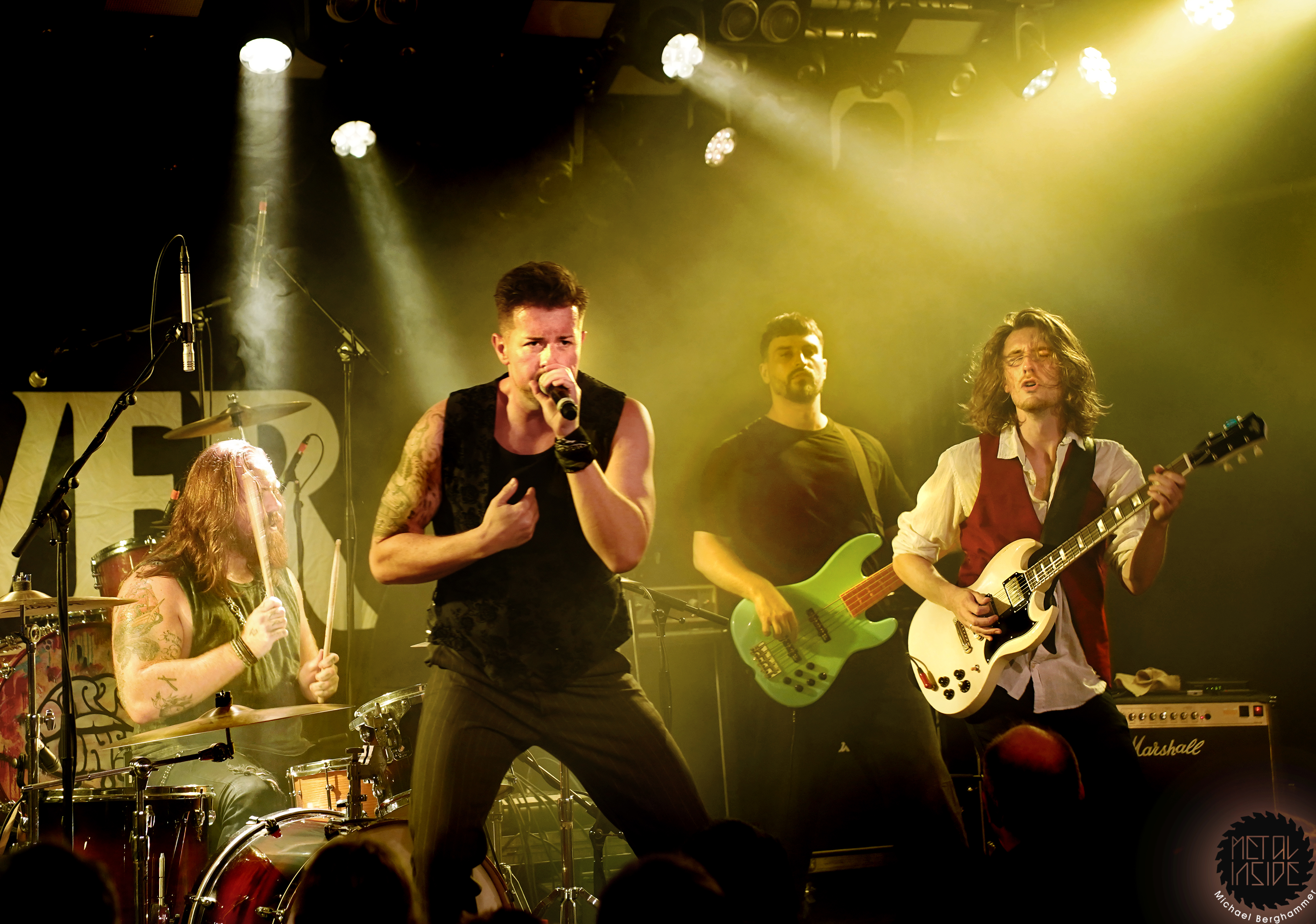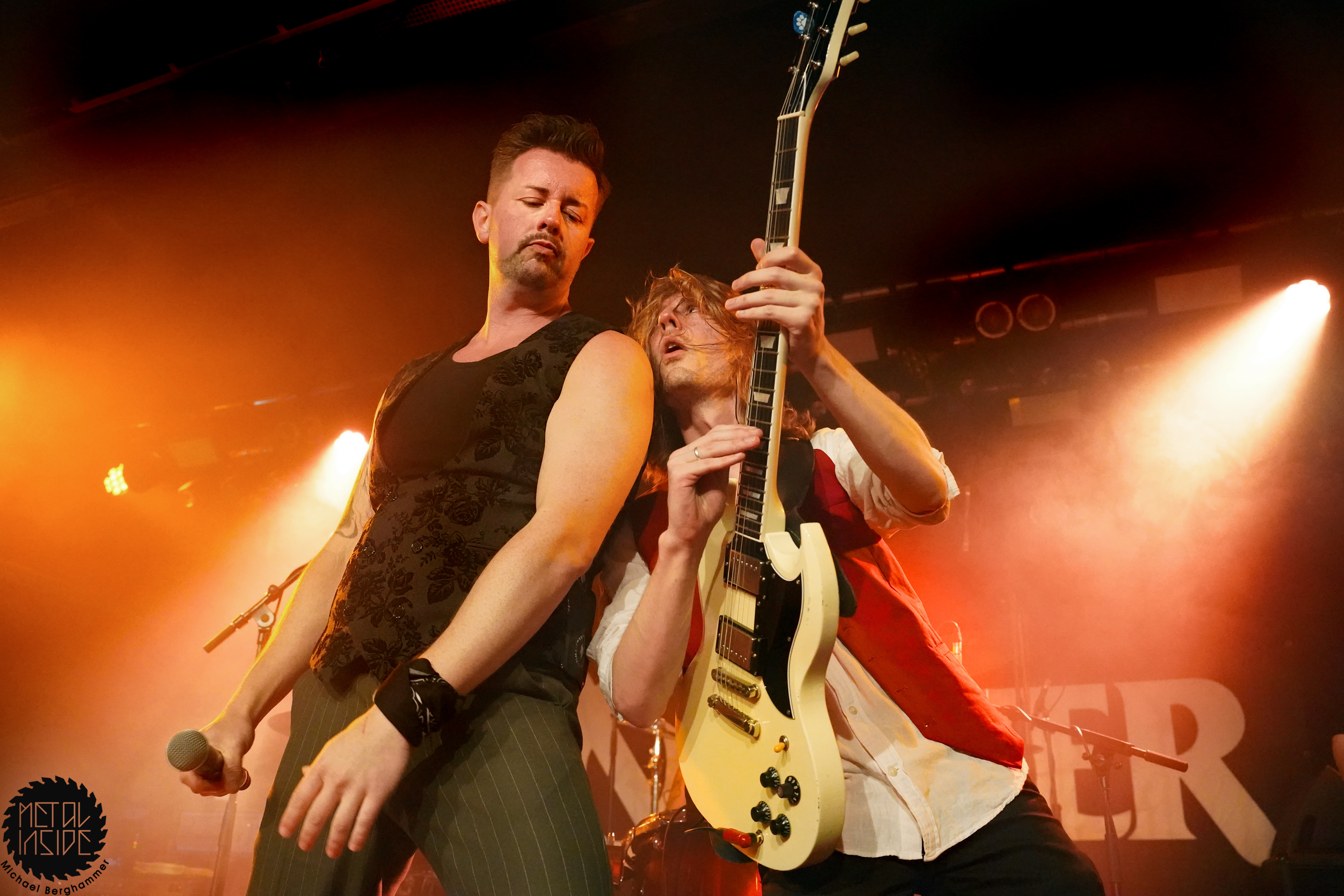DIRTY HONEY starten nach kurzer Umbaupause. Die Band ist pur amerikanisch, optisch ein Hybrid aus VAN HALEN und TESLA in Vierer-Besetzung. Die Musik bewegt sich zwischen GREAT WHITE, THE BLACK CROWES und wohlempfundenen Country und Südstaaten-Moves. Mir scheinen die Musiker ein wenig zu cool, gerade am Anfang. Das löst sich aber im Laufe des Gigs. Auch die sympatischen und nahbaren QUIVER verstärken hier den Kontrast. Sänger Marc Labelle macht einen auf Schwerenöter, inklusive Nippelblitzer und freier Schulter. Gesanglich punktet der Hübsche aber durchaus mit Können und Stimme. Die Band ist selbstbewusst und siegessicher. Der Erfolg in Amerika zeigt Wirkung. Hier heißt es, kleinere Brötchen backen beziehungsweise kleinere Location beackern, aber die Show der vier Kalifonier kommt super in Aschaffenburg an. Das Publikum weiß zum Großteil, was es bekommt, und ist kundig in Text und Strophe. Die Songs funktionieren und haben neben dem Groove ordentlich Wiederhaken. Die Band zeigt sich als Einheit, Gitarrist John Notto spielt eine wilde und blitzsaubere Klampfe und die Rythmus-Fraktion ist präzise und druckvoll. Sänger und Gitarrist sind im Zentrum der Perfomance und bilden, unterstelle ich mal, wohl auch den Bandkern. Nach gut 90 Minuten ist Schicht im Schacht.