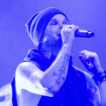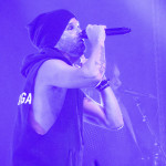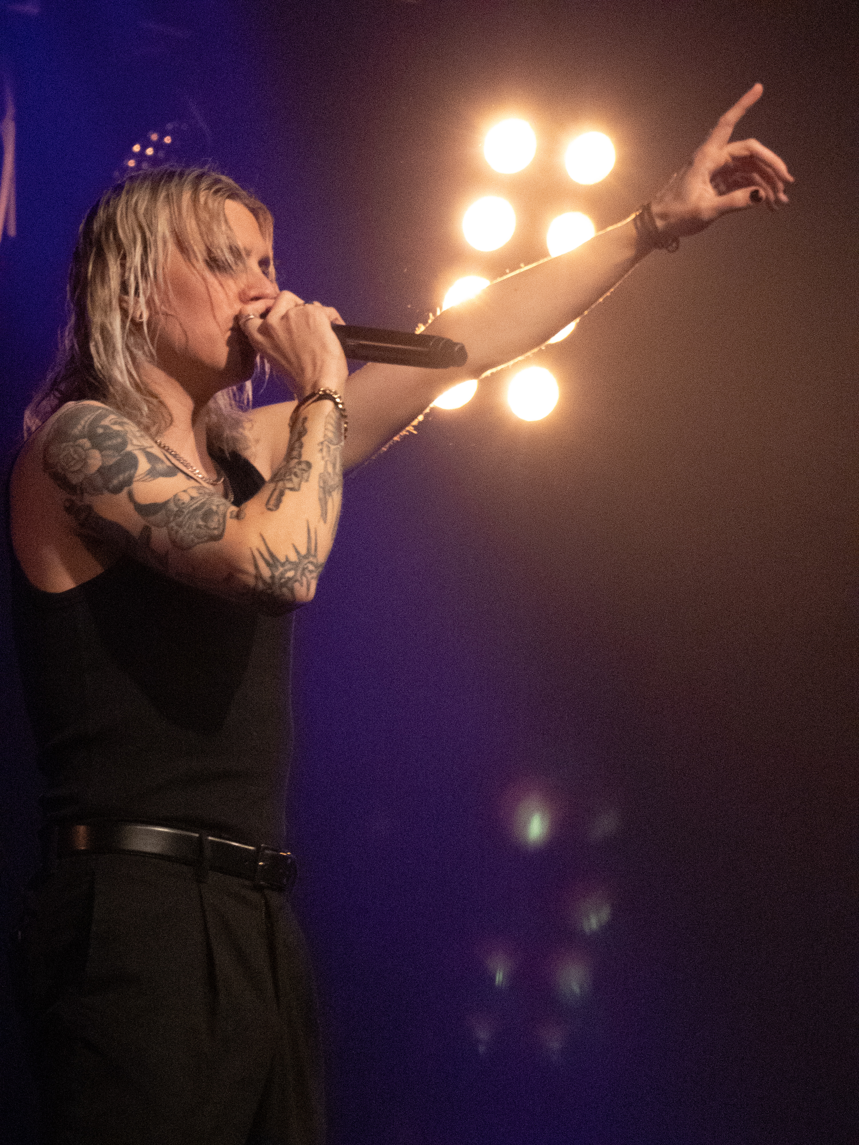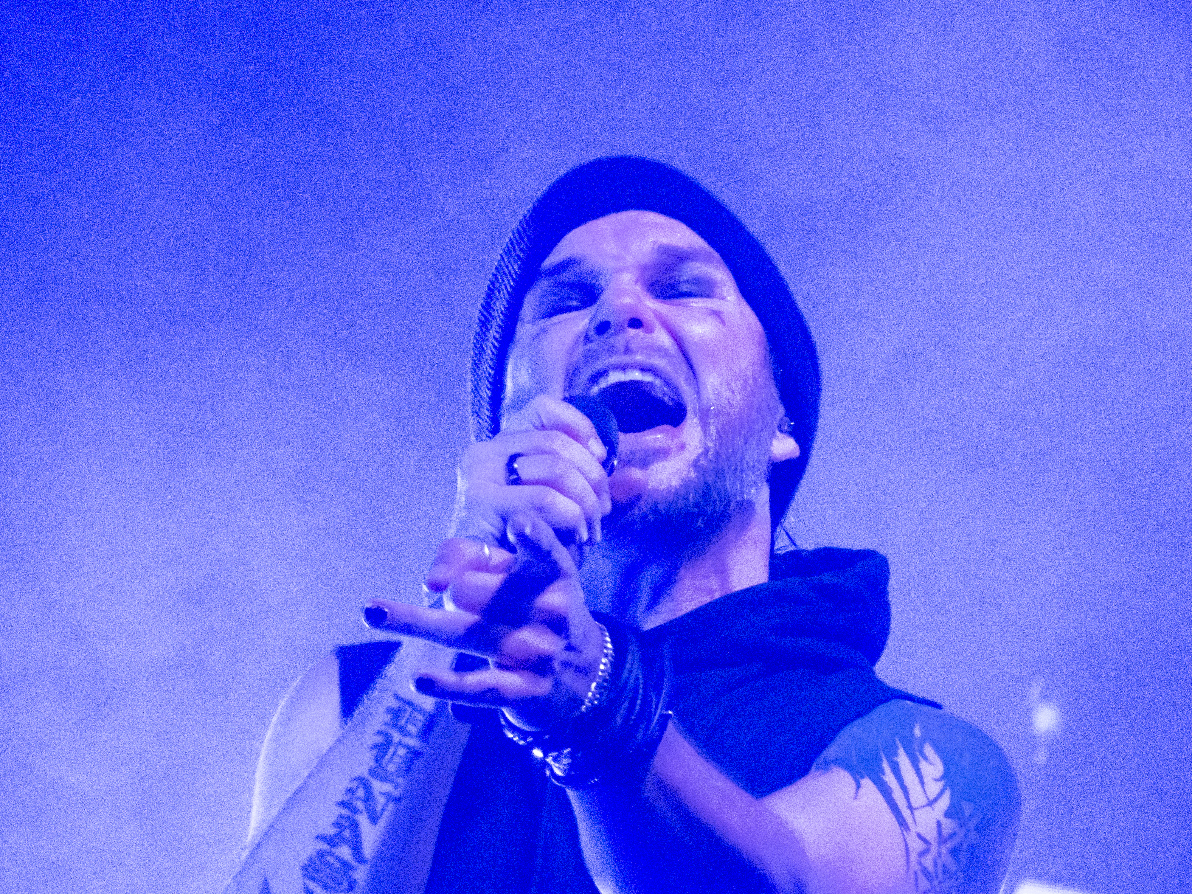 Gegen 21:45 Uhr war es dann schließlich Zeit für die Headliner des Abends: THE RASMUS enterten die Bühne und legten mit „Rest In Pieces" flott los, gefolgt von „Guilty" und „No Fear". Mit „Time To Burn" folgte ein ziemliches Brett vom Erfolgsalbum „Dead Letters", das schon damals live schön heavy rüberkam und seitdem nichts von seinem Flair eingebüßt hat. Mit „Bullet" und „F-F-F-Falling" gab es auch zwei Ausflüge in die Frühzeit der Band, während derer sie in Finnland bereits erfolgreich, in unseren Breiten jedoch noch weitestgehend unbekannt war. Generell zeigten sich die Finnen äußerst dankbar für ihre treue Anhängerschaft: „The Rasmus and this place go back a long time. Is there anyone out there wo was here for our 2003 or 2004 show? Yes? Wow, so many originals! And some even brought their kids along to listen to the music together. That´s great!”. Insgesamt war das Publikum ebenso zahlreich wie bunt gemischt, quasi alle Altersklassen waren vertreten. Dass der eine oder andere besonders begeisterte Pappenheimer der Band mittlerweile persönlich bekannt war, wurde spätestens mit Sänger Lauri Ylönens späterer Dankesbekundung an die erste Reihe klar: „I want to thank all the hardcore fans in the front row – some of them have been to more than 14 concerts!“ Kurze Pause. Dann grinsend: „That´s more than me!“ Selbstverständlich durfte neben den alten Hits auch neues Material nicht fehlen und Songs wie „Break These Chains“, „Creatures Of Chaos“ und „Banksy“ rockten nicht weniger als ihre altbewährten Kollegen. Für „Weirdo“ wurde Rampensau Lee Jennings von The Funeral Portrait noch einmal als Gastsänger auf die Bühne gebeten, schließlich hatte er schon an der Studioaufnahme mitgearbeitet und was läge da näher, als das Ganze dann auch live zu performen, wenn man sowieso schon gemeinsam auf Tour ist. Aber auch balladeske Töne wurden angeschlagen: das wunderbare „Not Like The Other Girls“, ebenfalls vom „Dead Letters“-Album, das Lauri mit dem Hinweis, dass sie früher oft Lieder ihren Freunden gewidmet hatten, nun einer Freundin namens Niina widmete, die vor einiger Zeit ihren Vater verloren habe, und das ebenfalls sehr gelungene Duett „October & April“, in der Studio-Version ursprünglich aufgenommen mit Anette Olzon (damals noch bei NIGHTWISH), bei dem Gitarristin Emilia Suhonen zeigen konnte, dass sie auch als Sängerin durchaus Talent hat. Letztere schien überhaupt wahnsinnig Spaß zu haben, denn während zwar auch ihre Bandkollegen mit erkennbarer Spielfreude dabei waren, strahlte sie teilweise wie ein Honigkuchenpferd übers ganze Gesicht. Nach „In The Shadows“, mit dem die Band im deutschsprachigen Raum ihren Durchbruch gehabt hatte, und „Weirdo“ endete das reguläre Set, bevor Lauri zur Zugabe zunächst allein mit der Akustikgitarre in der Hand auf die Bühne erschien, um sehr stimmungsvoll „Sail Away“ in einer Solo-Akustik-Version zu performen. Als danach auch der Rest der Truppe auf die Bühne zurückkehrte, wurden als Rausschmeißer noch einmal flottere Töne angestimmt und das Publikum schließlich mit „Love Is A Bitch“ nach etwa anderthalb Stunden Spielzeit zufrieden in die kalte Kölner Novembernacht entlassen. Bis zum nächsten Mal – nähdään pian!
