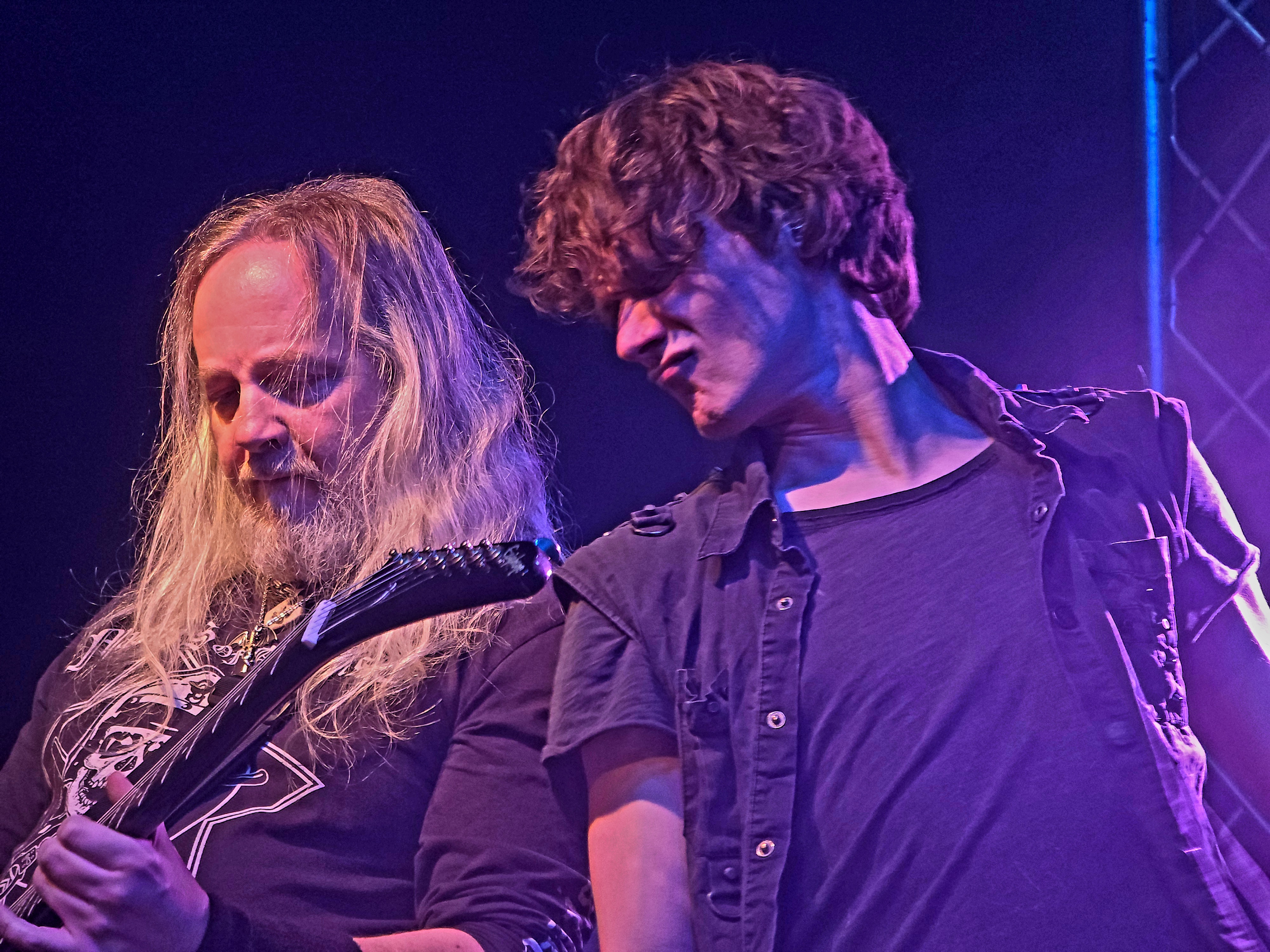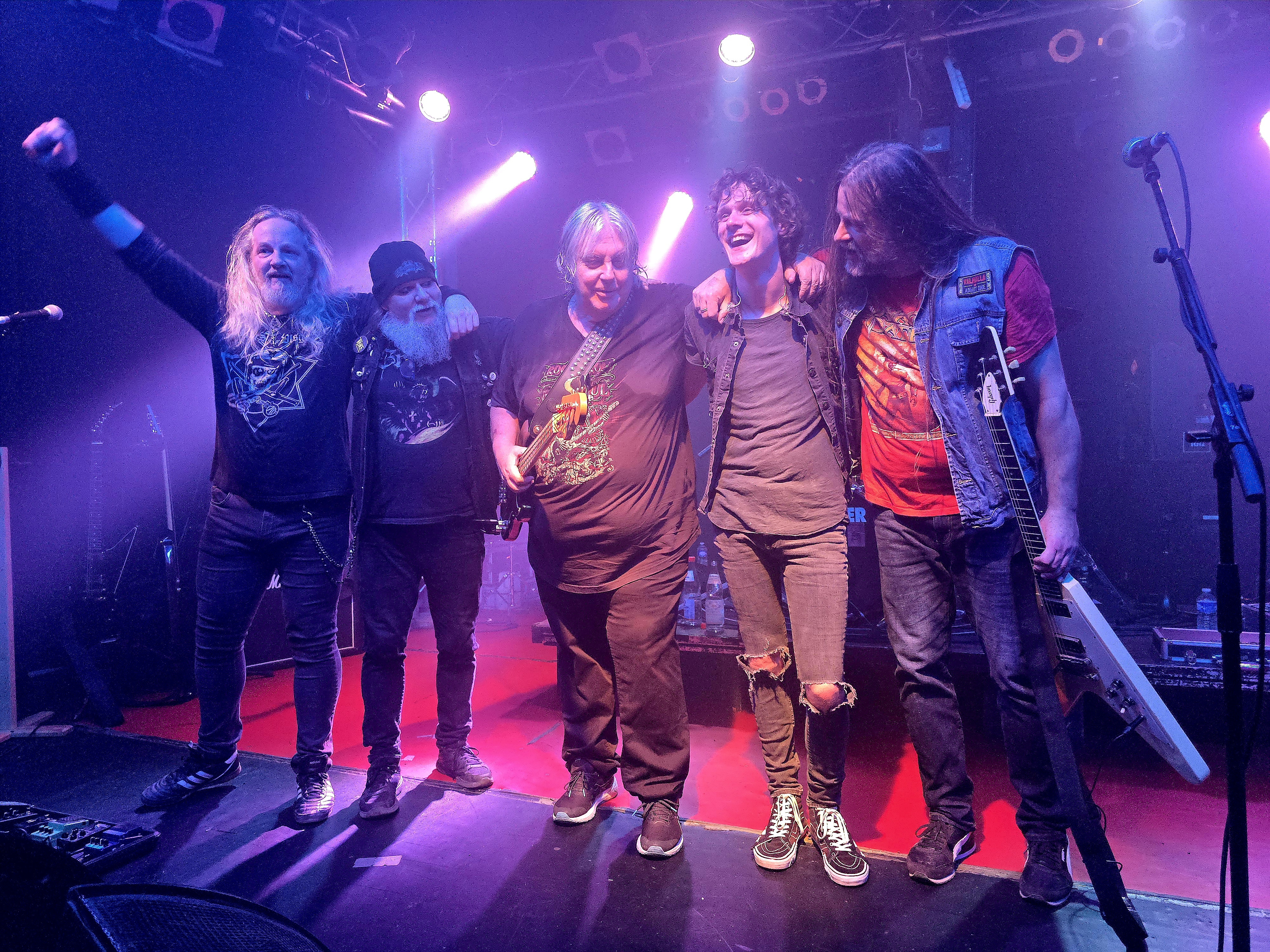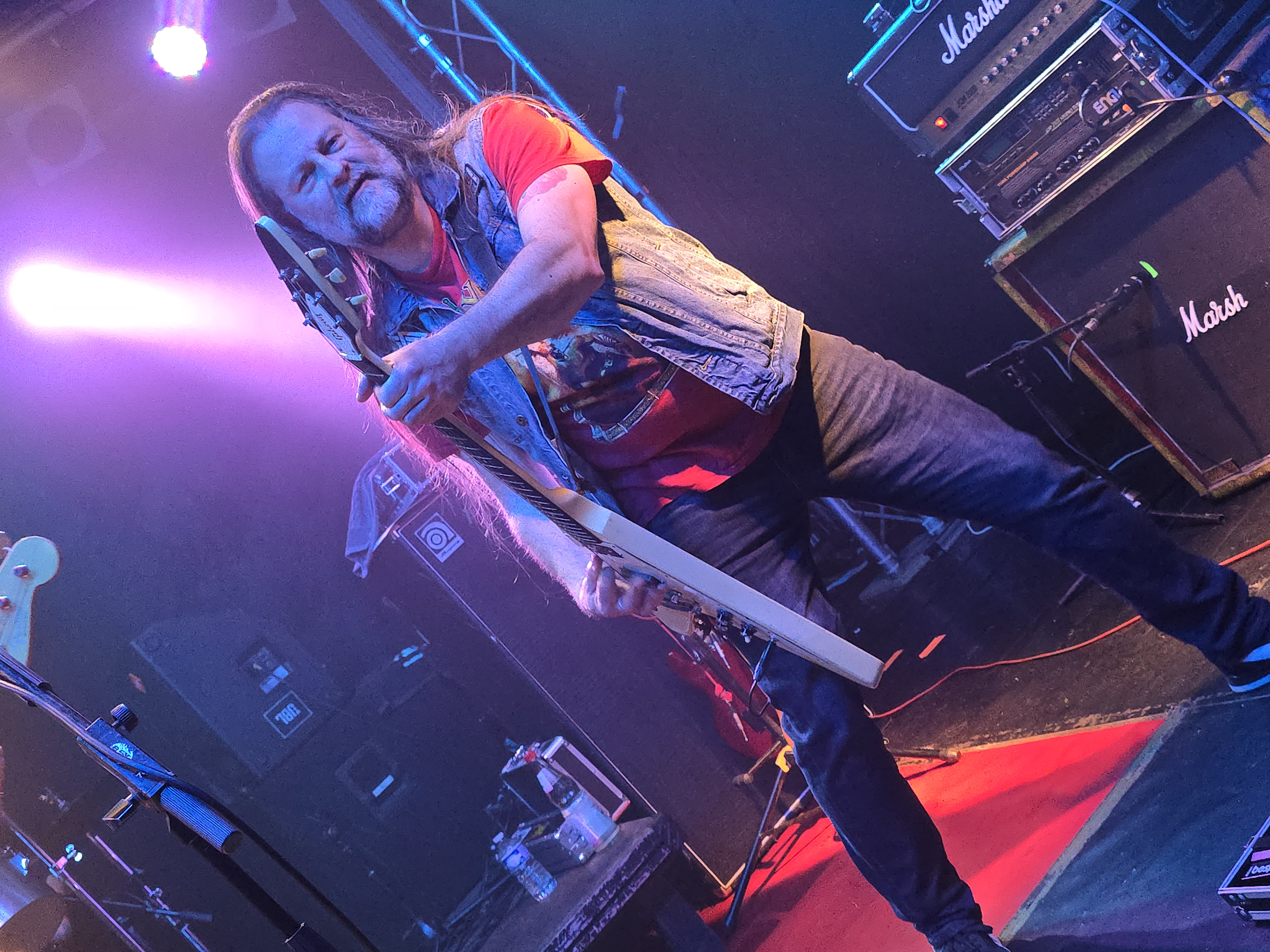 Durch SAINT’S ANGER kräftig aufgewärmt werden TRANCE lauthals empfangen. TRANCE haben es aktuell nicht gerade leicht. Denn nicht nur Gitarrist Markus Berger wird auf Grund von Krankheit von Wolfgang Buchinger ersetzt, sondern auch Sänger Alexx Stahl hütet das Lazarett und wird von seinem extra aus Holland angereisten Vorgänger Nick Hollemann vertreten. Man macht jedoch aus der Not eine Tugend und insbesondere Hollemann liefert eine Show der Extraklasse und es wirkt, als sei er nie weg gewesen. Der Mann ist ein Naturereignis und vereint eine energische aber immer hochsympathische Bühnenshow mit Champions League würdigem Gesang zu einer gnadenlos guten Performance. Dass der Monitor von Gitarrist Kalli den Dienst verweigert, wird vom Mann hinterm Mischpult so geregelt, als dass er alles andere einfach bis zum Anschlag aufreißt. Das ist dann gegen Ende schon grenzwertig. Aber die Band gibt hier nicht auf und rockt auch im Blindflug munter drauf los. Auf die Frage an den Soundmenschen, ob man das nicht irgendwie in den Griff bekommen könne, kommt die launige Antwort „TRANCE sollten einfach mal einen Song spielen“. Genau mein Humor. Und wie SAINT’S ANGER setzen auch TRANCE bis auf wenige Ausnahmen vornehmlich auf ihre Klassiker: „Heavy Metal Queen“, „Confession“, „We Are The Revolution“, „Rockstar“ oder das vielumjubelte epische „Loser“ sind Zeugnisse einer Band, die Anfang der 80er ganz vorne mit dabei war, es dann eben doch nicht in letzter Konsequenz geschafft haben, während die Mitbewerber dieser Zeit ACCEPT, SINNER oder auch die SCORPIONS gnadenlos davonzogen. Aber fast 45 Jahre später ist das völlig egal und man feiert die Songs als das, was sie sind: Underground Klassiker, die einer kleinen, aber feinen Fanschar viel bedeuten. Und so geht mit „Live & Heavy“ ein illustrer und sehr unterhaltsamer Abend im Zeichen des Heavy Metal zu Ende.