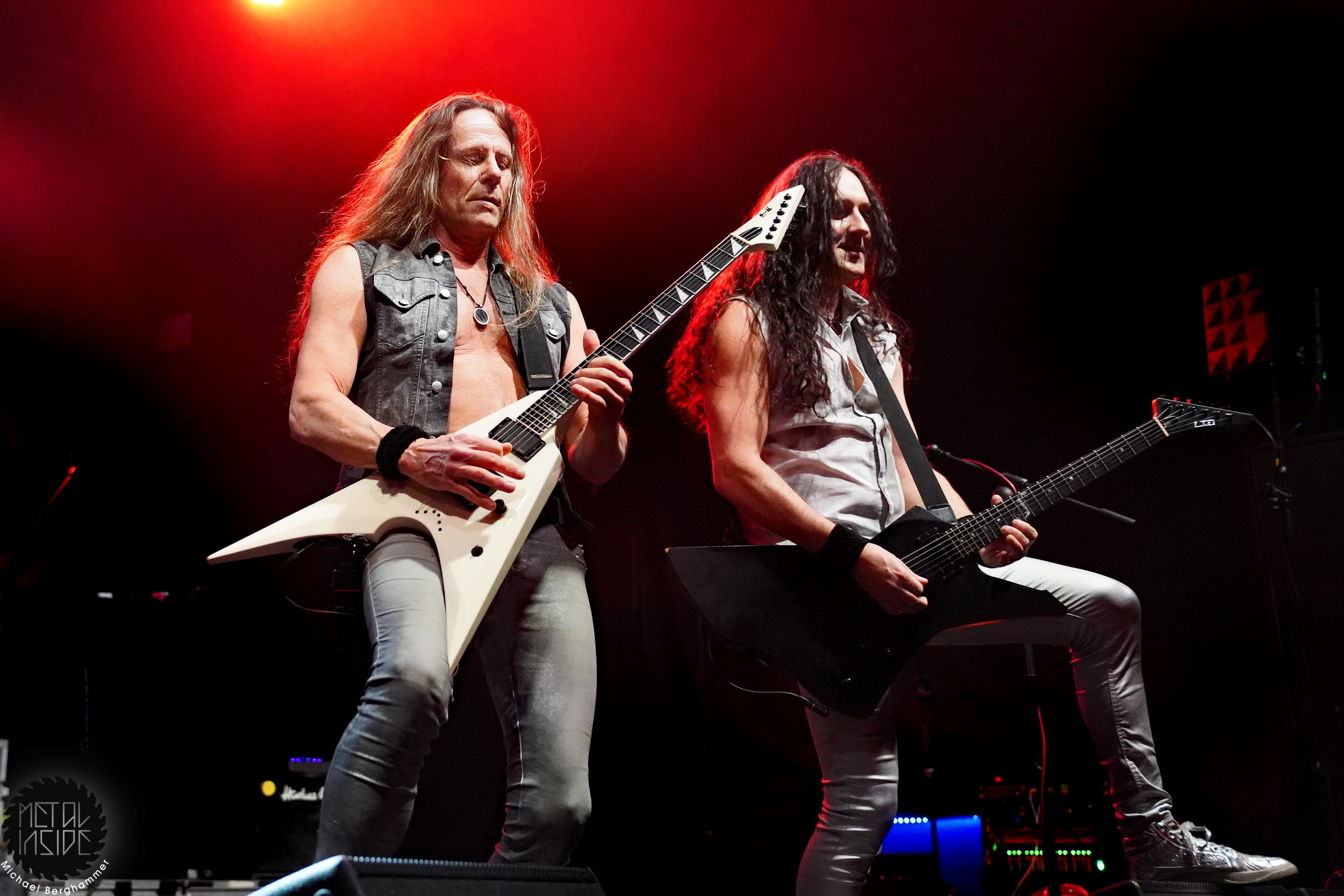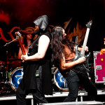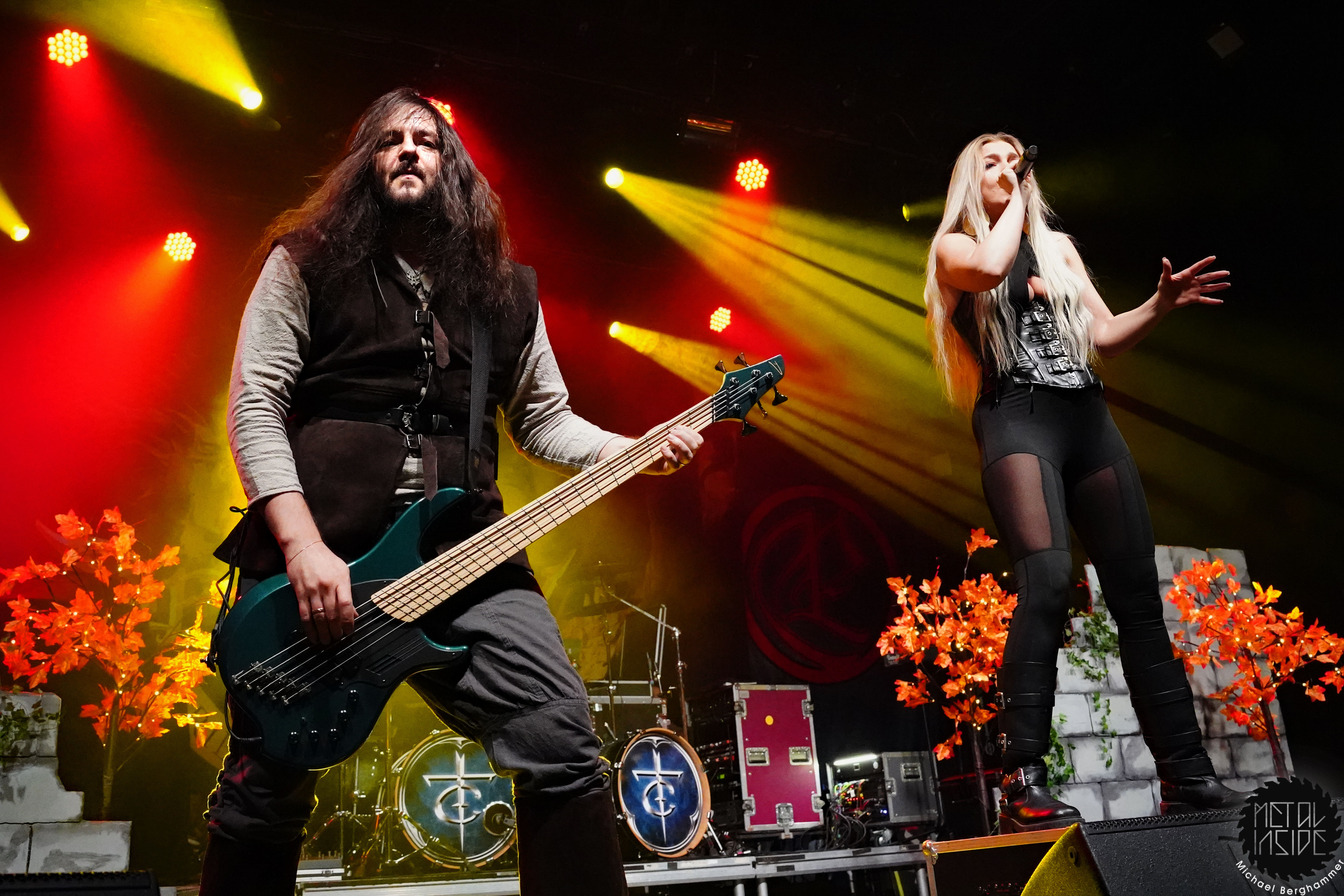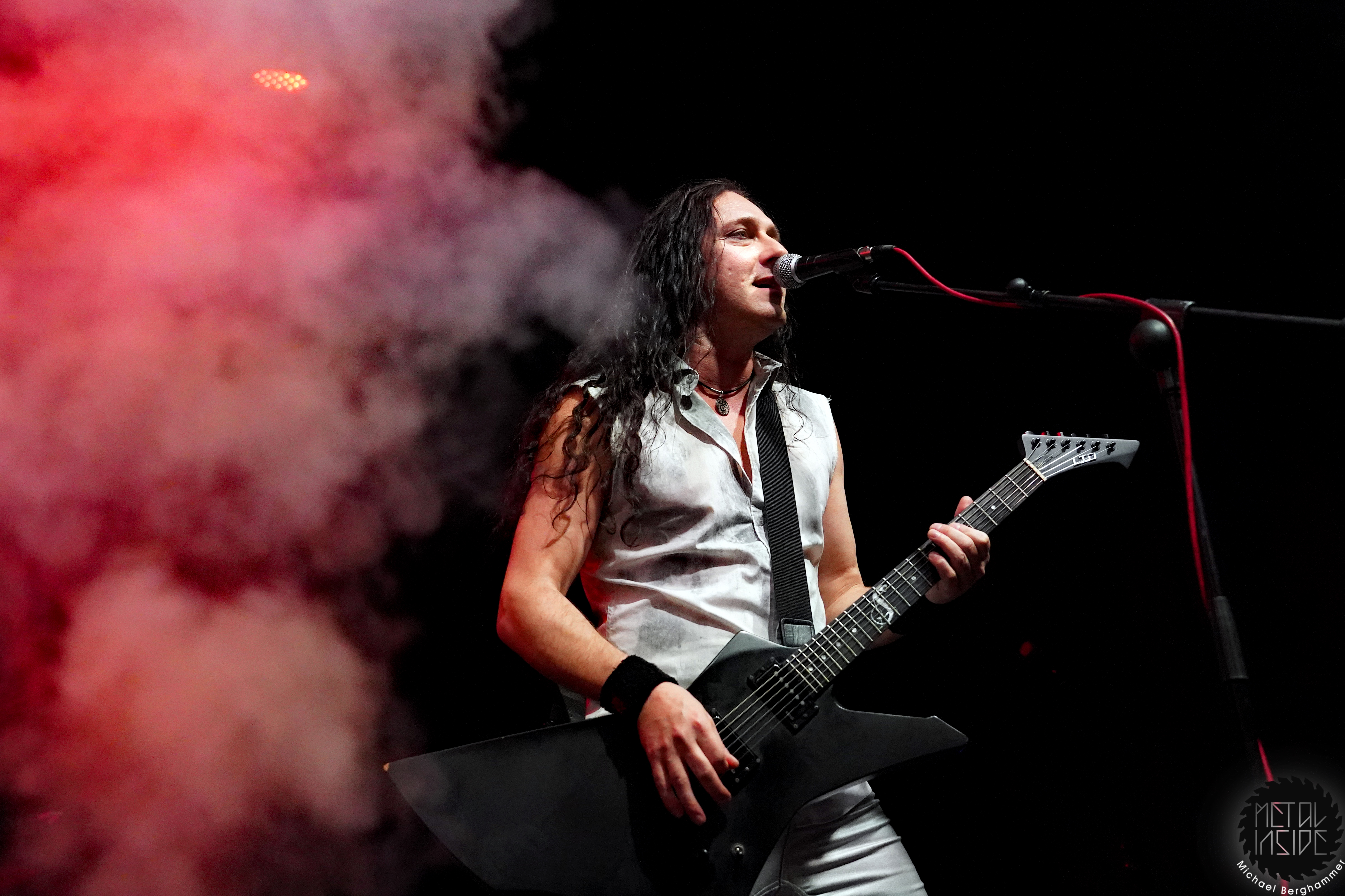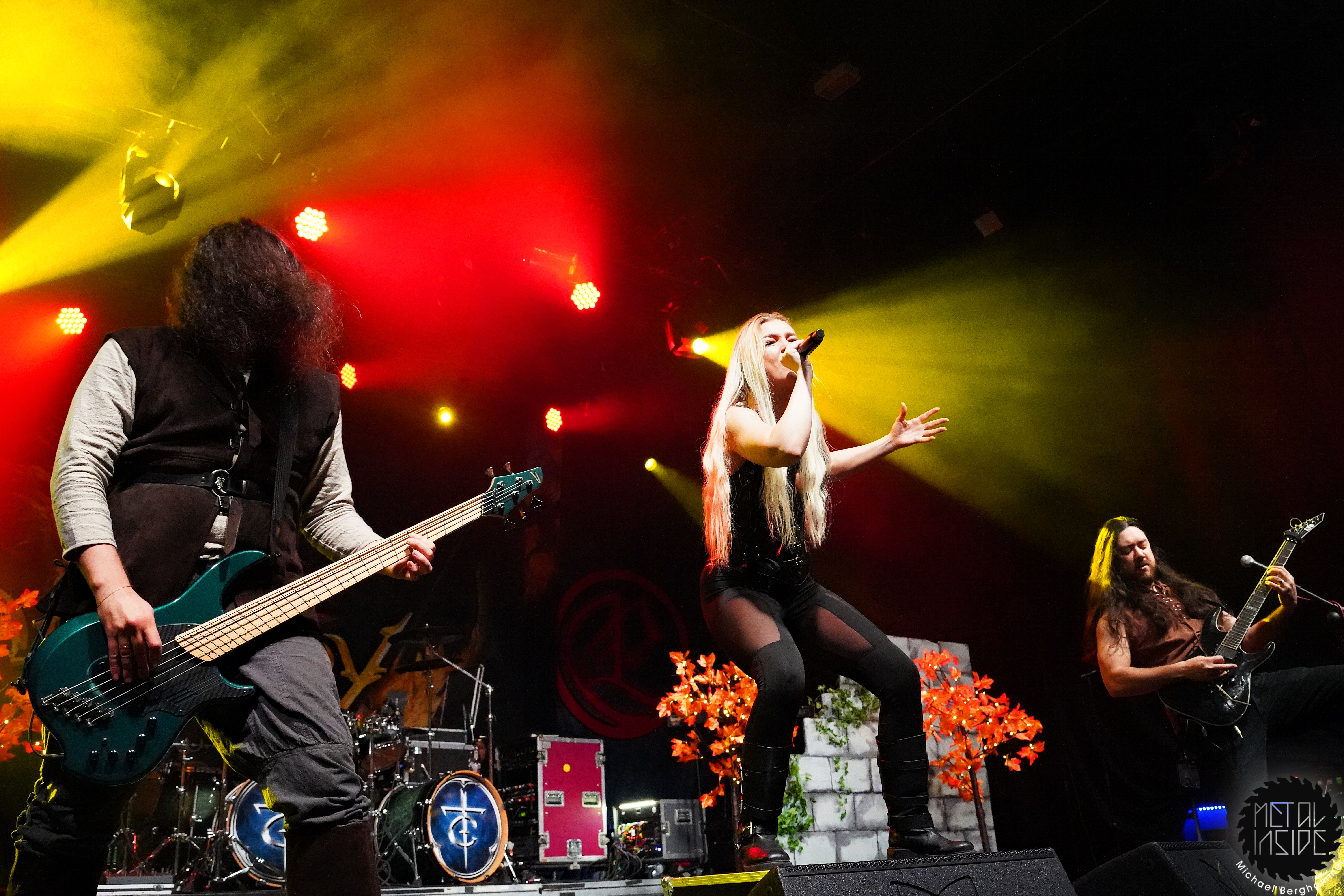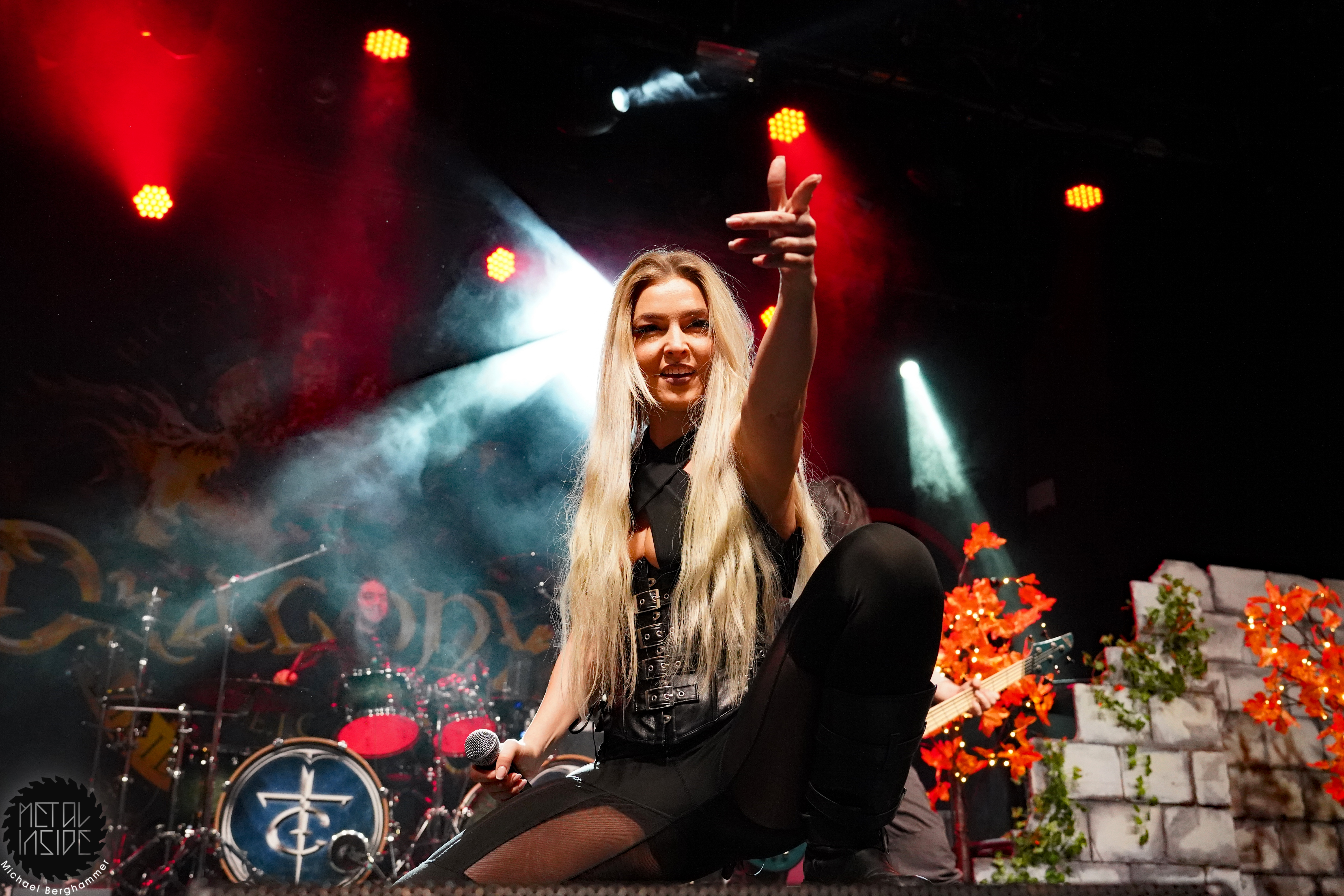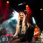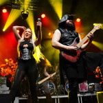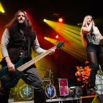 DRAGONY aus Wien wissen anfänglich ein wenig zu verwirren. Man hat sich aktuell dazu entschlossen, Maria Nesh als zweite Vollzeitsängerin neben Siegfried Samer in die Band zu holen. Maria trat schon öfter mit DRAGONY als Gast auf und ist so keine Unbekannte mehr. Allerdings wird es immer wieder vorkommen, dass DRAGONY auf Grund anderweitiger Verpflichtungen einer ihrer Frontleute auf eine vokale Doppelspitze verzichten. So kommen wir heute in den Genuss einer „Maria Only“ Show. Und sie macht von Anfang an keinen Hehl daraus, wer die Chefin im Ring ist. Noch vorhandene Unsicherheiten und kleine Wackler im Gesang macht sie mit viel Engagement und Interaktion mit dem Publikum wett. Der symphonische und hymnenhafte Power Metal kommt gut an und findet mit „Beyond The Rainbow Bridge“ seinen Höhepunkt. DRAGONY werden sich heute Abend besonders beim FREEDOM CALL Fanblock einige neue Freunde gemacht haben.