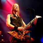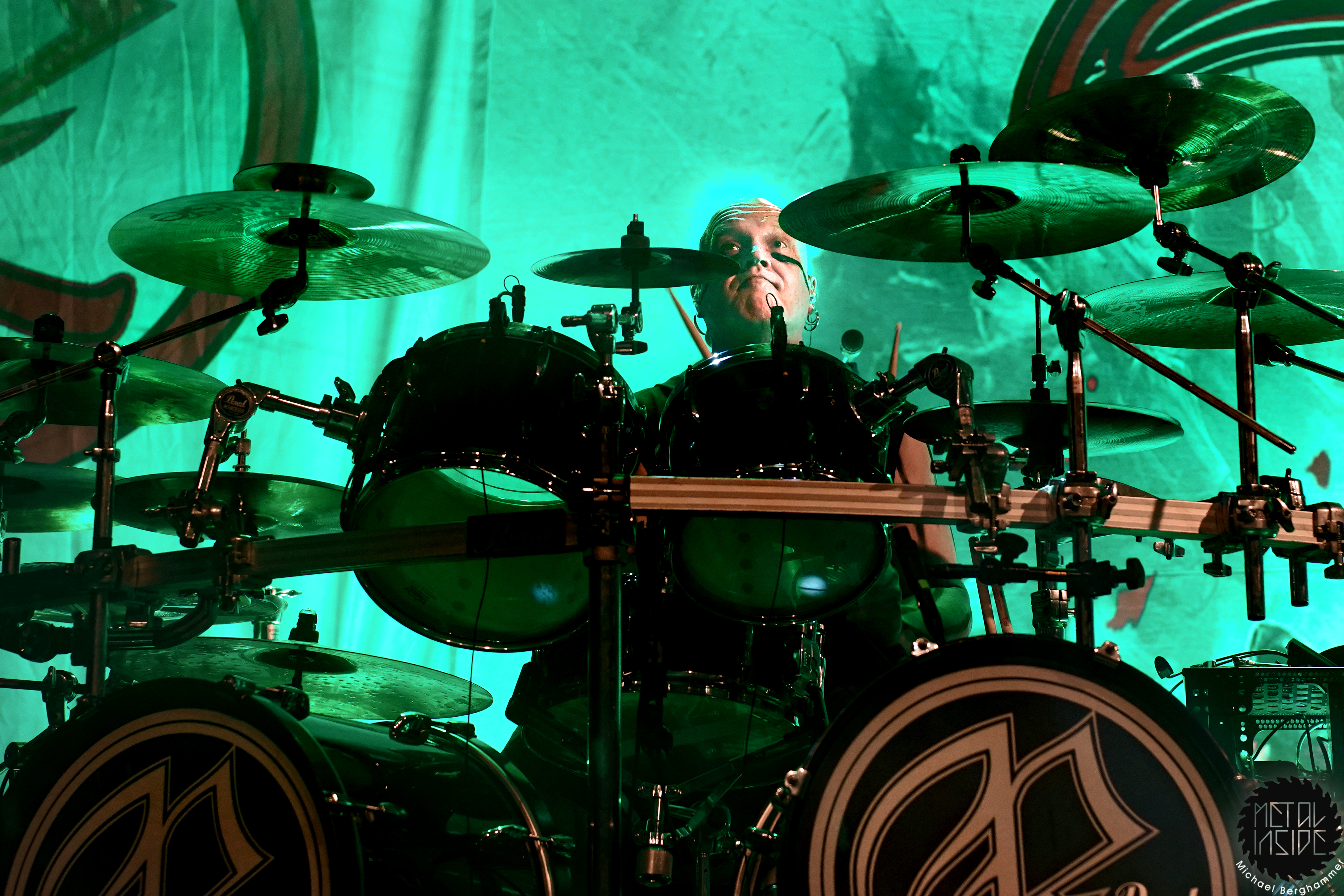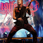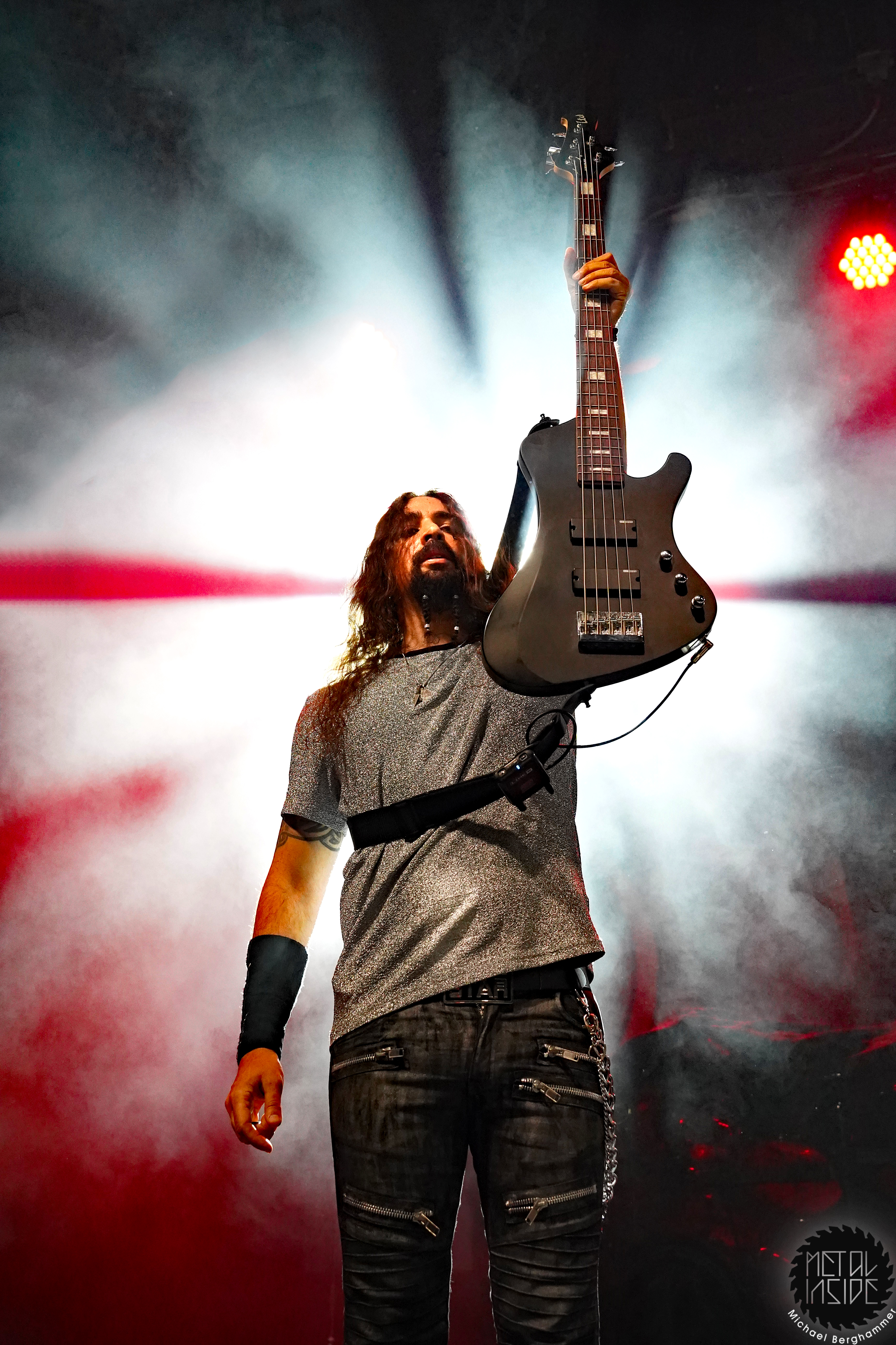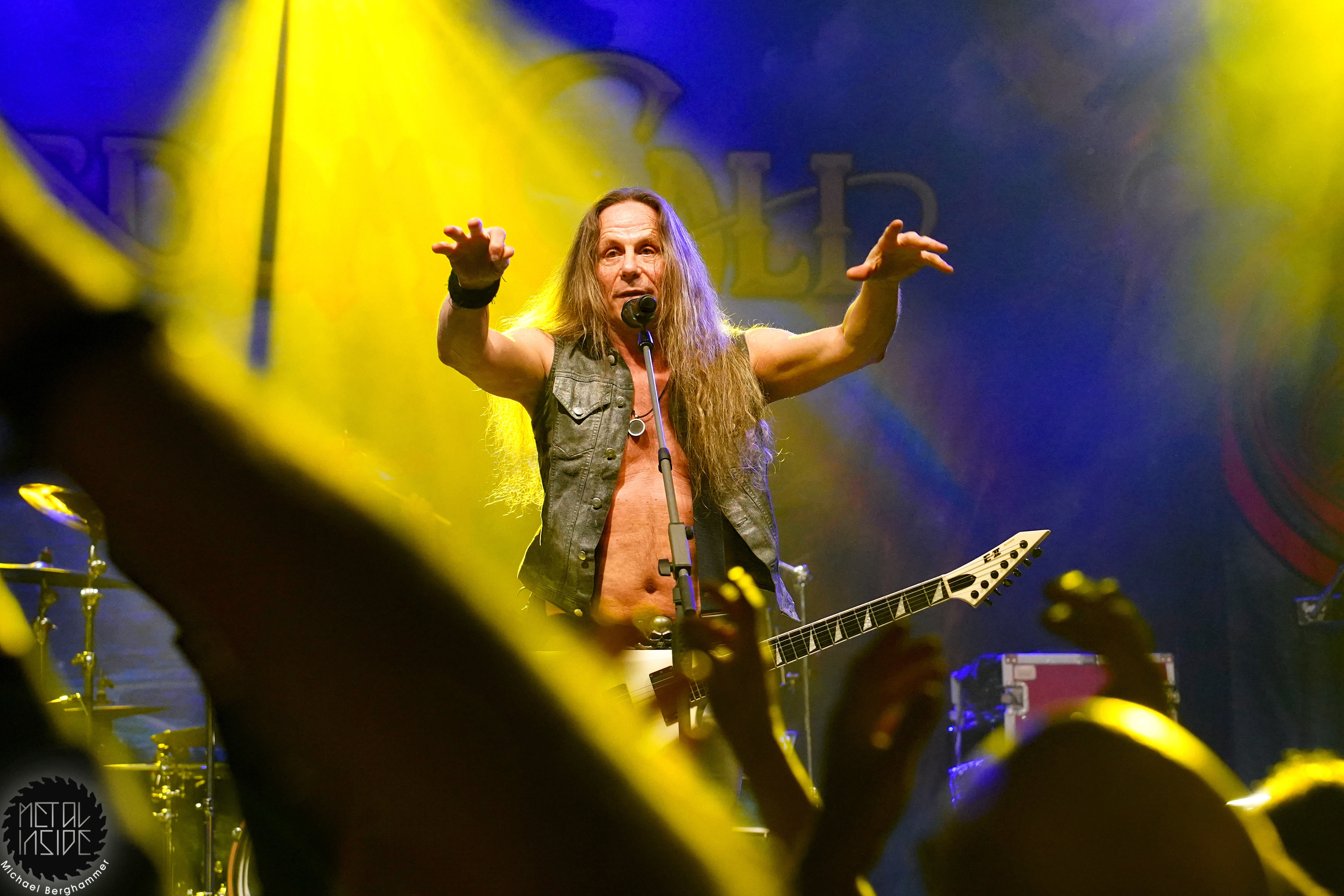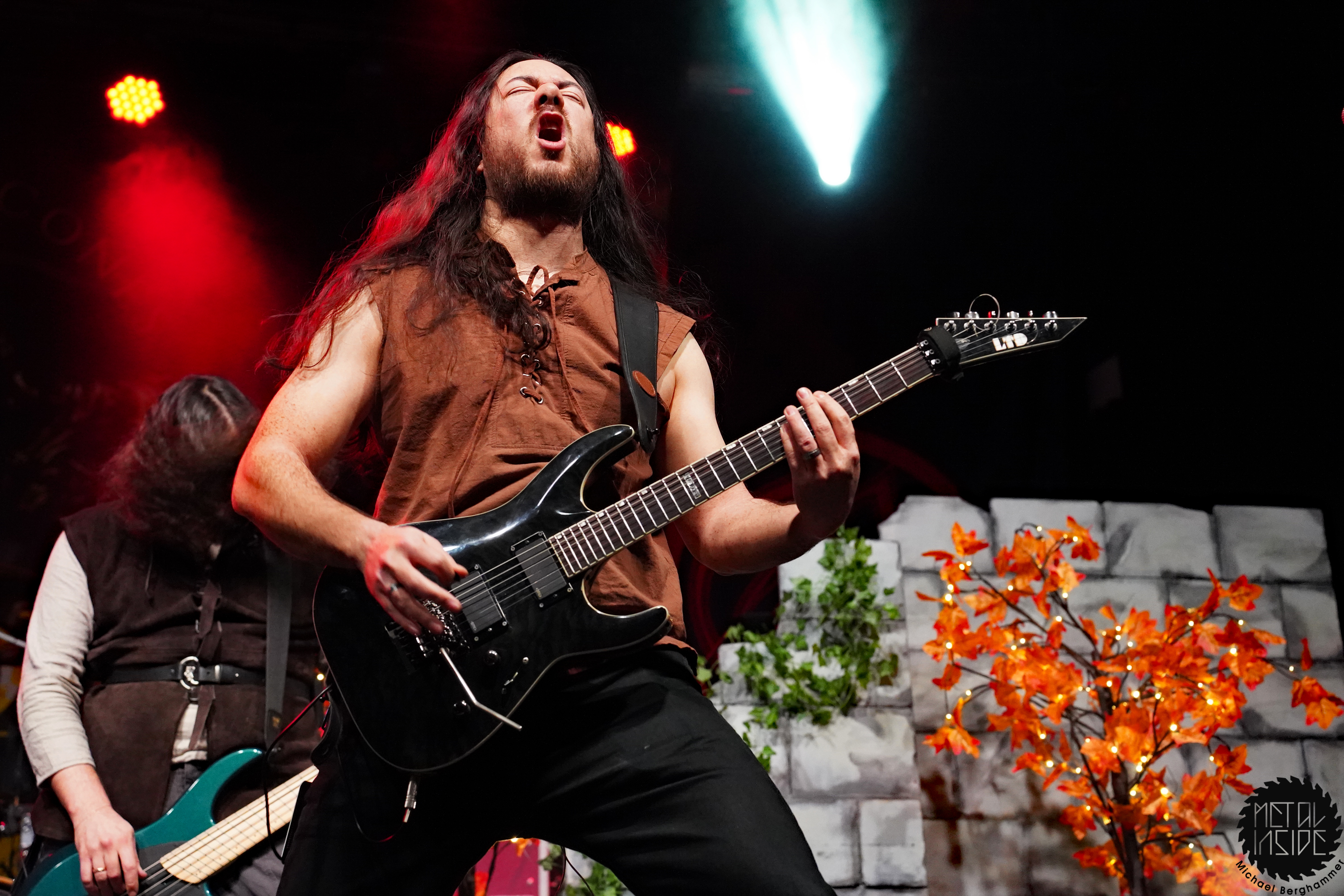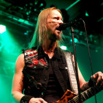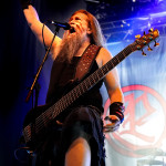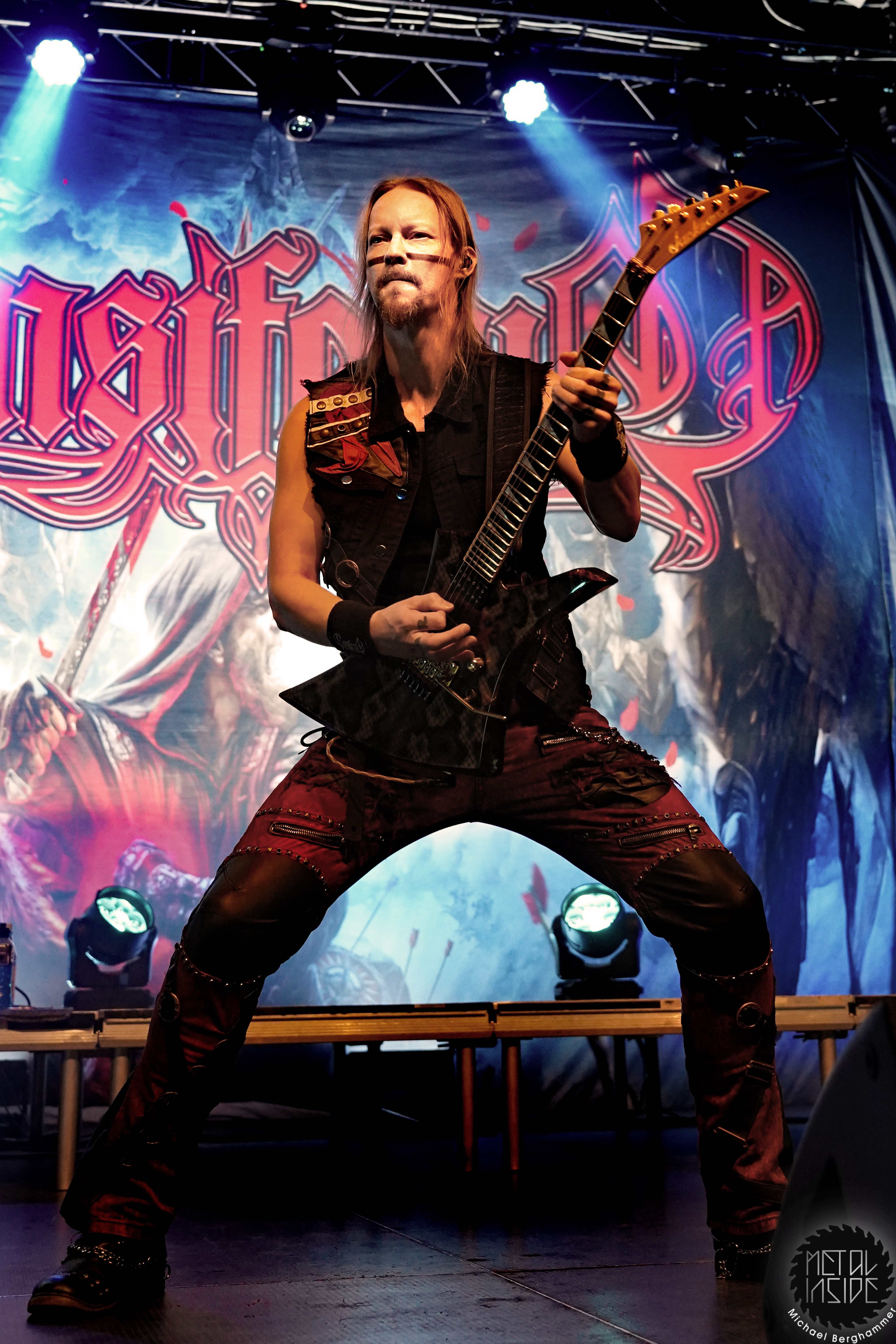 Stichwort FREEDOM CALL: Die Franken gibt es nun auch schon über ein Vierteljahrhundert und man hat den Begriff „Happy Metal“ geprägt wie keine andere Band. Auch heute betritt man mit einem breiten Grinsen die Bühne und lässt als erstes den „Hammer Of The Gods“ darnieder sausen. Es macht mir immer wieder eine immense Freude, Drummer Ramy Ali bei der Arbeit zuzusehen. Sollte es je eine Muppets Realverfilmung geben (ja, dass das keinen Sinn macht, ist mir bewusst), dann wäre er für die Rolle des „Tier“ die perfekte Wahl. Frontmann Chris Bay führt mit seinem, ihm ganz eigenen, Dauergrinsen souverän durch das Programm und verkündet stolz, dass man von einem amerikanischen Magazin zur „Happiest Band Of The World“ gewählt wurde. Diese Auszeichnung lieferte die Inspiration zur neuen Single „Heavy Metal Happycore“. So eine Nummer dürfte sich außer FREEDOM CALL niemand leisten, aber hier passt es und so schallt der Chorus lauthals durch die Batschkapp. Dass bei der Single Petri Lindroos vom heutigen Headliner ENSIFERUM mitwirkt, spricht für die gute Stimmung der Bands untereinander. Das finale Songtriple „Warriors“, „Metal Is For Everyone“ und natürlich „Land Of The Light“ sorgt für viel Gehüpfe, Gesinge und gute Laune. FREEDOM CALL sind und bleiben die Glücksbärchis des Heavy Metal. Dies aber absolut stimmig und authentisch. Mir macht’s immer wieder Spaß.