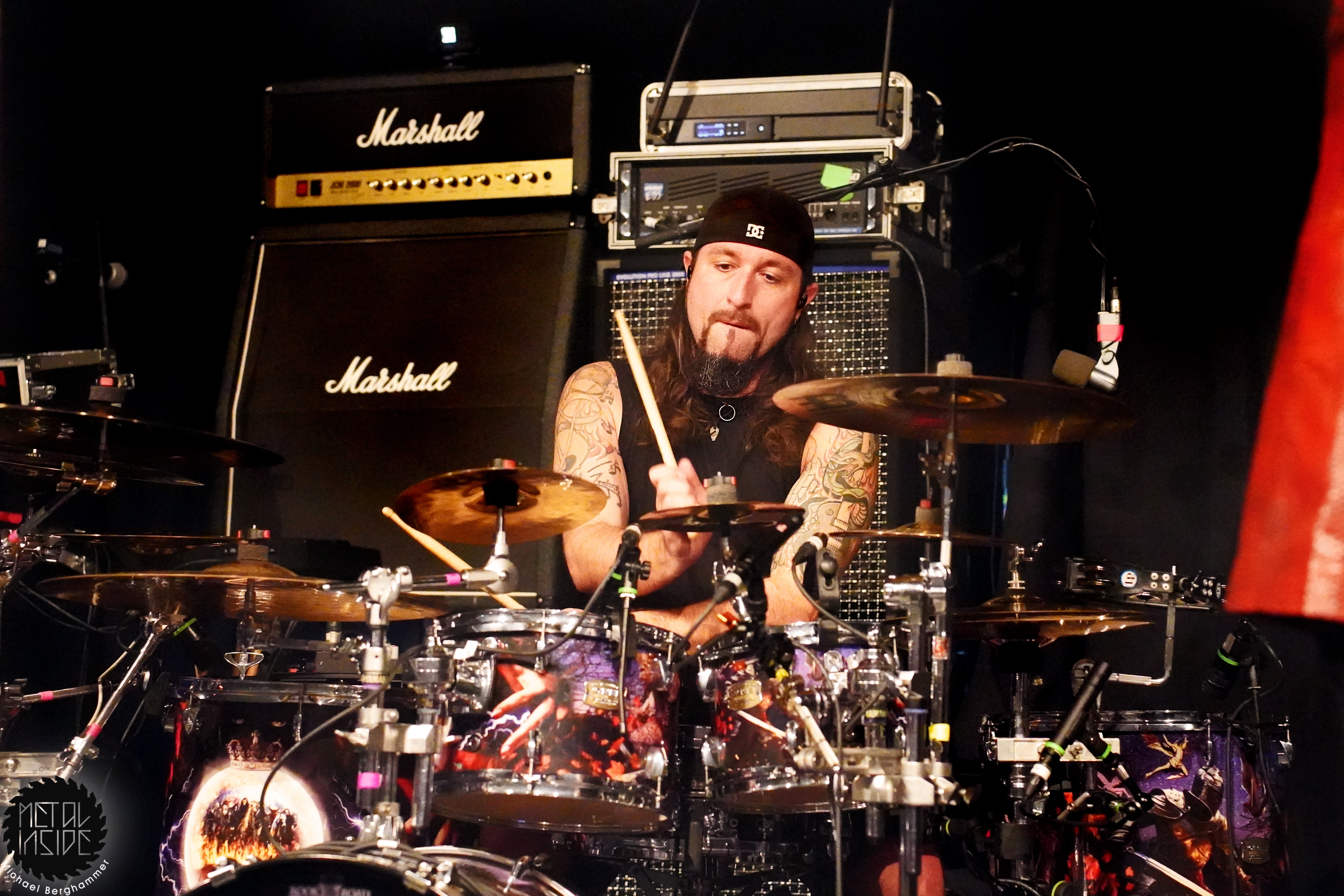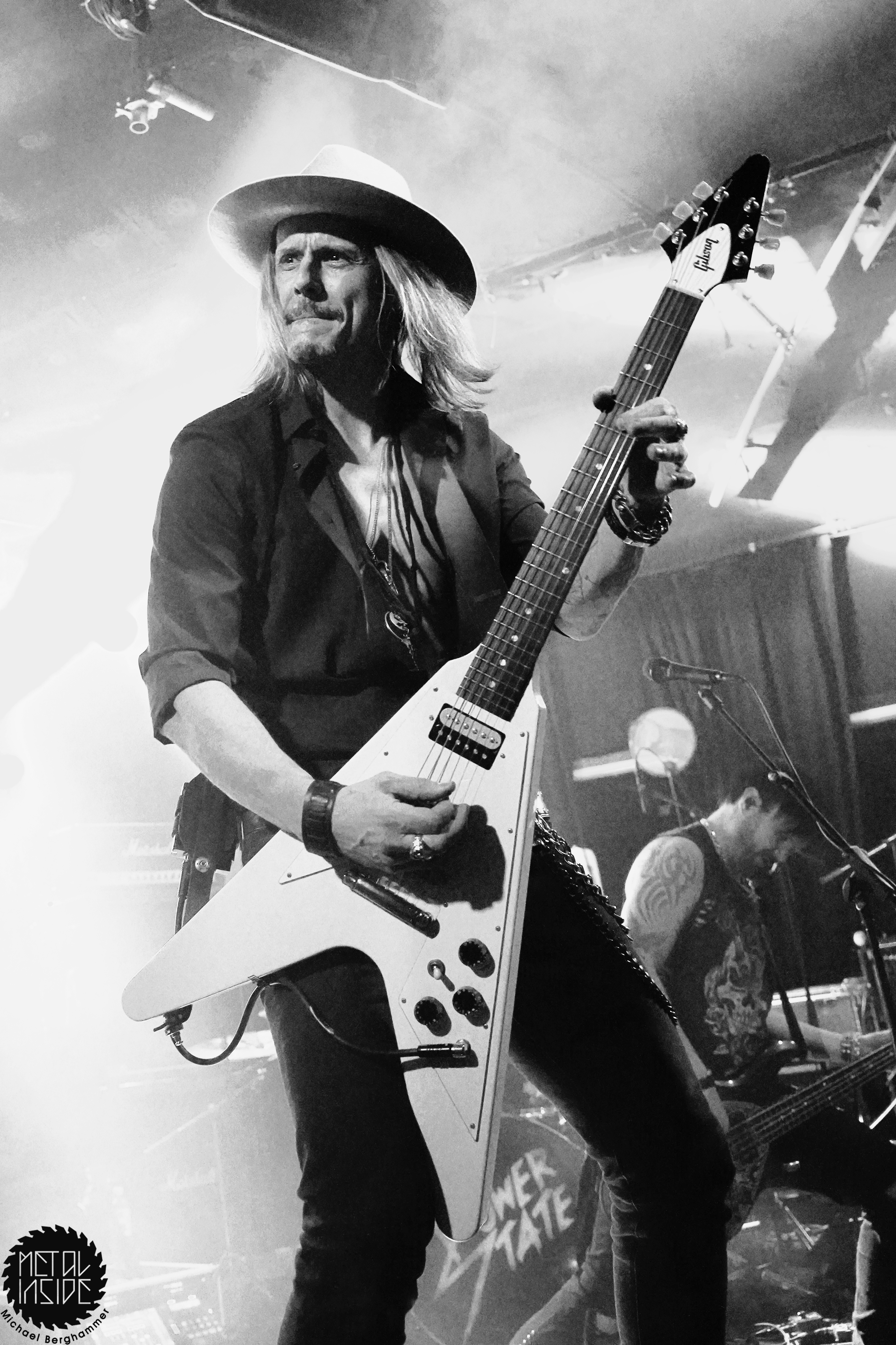 Die Location, das Frankfurter „Zoom“, liegt gut erreichbar im Industriegebiet der Main-Metropole und hat zwei Räume für Konzerte zu vergeben. MICHAEL SCHENKER spielt in dem größeren, dem mit einer korallenähnlich verkleideten Wand, und dazu punkten kurze Wege zu Getränken und Toiletten. Bei uns darf das Frankfurter Trio von POWER STATE den Abend musikalisch eröffnen. Die drei Musiker haben wie alle einen klasse Sound und überzeugen mit knackigen, modernen Rocknummern. 30 Minuten dürfen sie uns unterhalten, und das machen sie mit Spielfreude, Leidenschaft und ansteckend guter Laune.