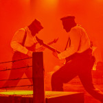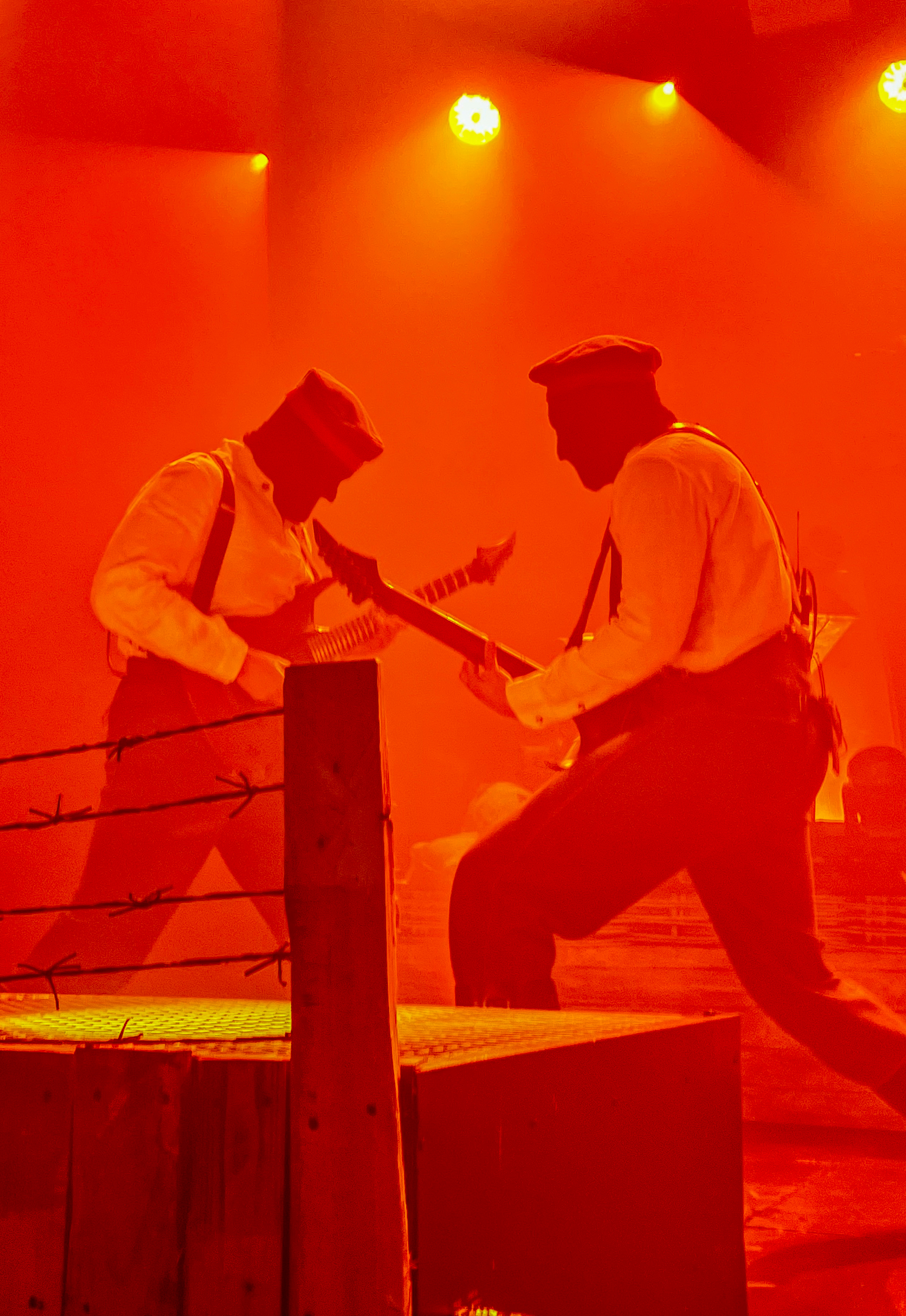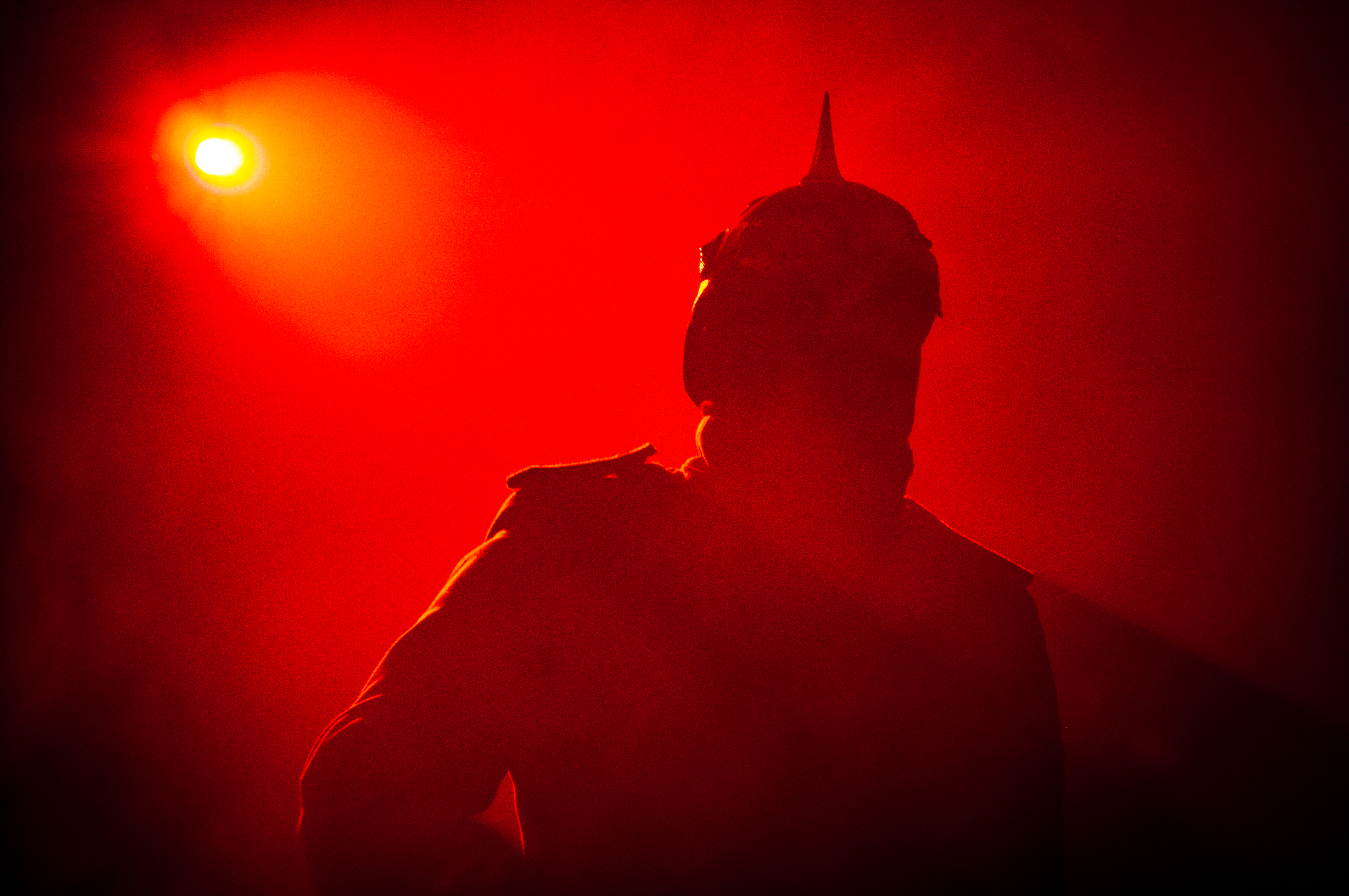 Die Bühne des komplett ausverkauften Kölner Carlswerk Victoria gleicht einem blutgetränktem Schlachtfeld: echter Stacheldraht, dichter Nebel, Kanonen und Sandsäcke formen eine Frontlandschaft. Zwischen den Songs werden Sequenzen eingespielt und Geschichten erzählt; fast wie im Geschichtsunterricht.