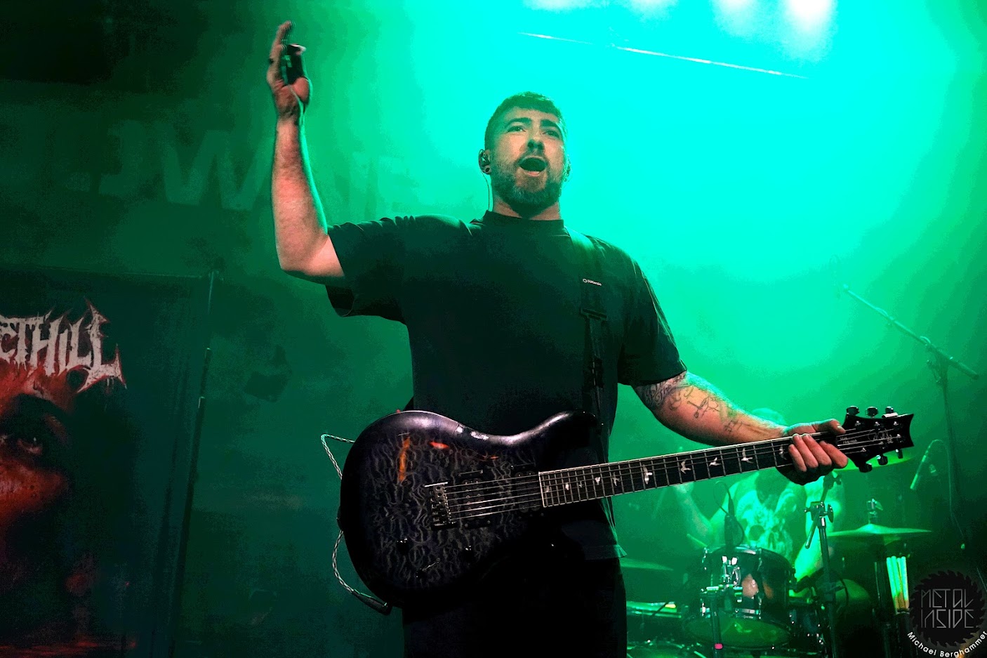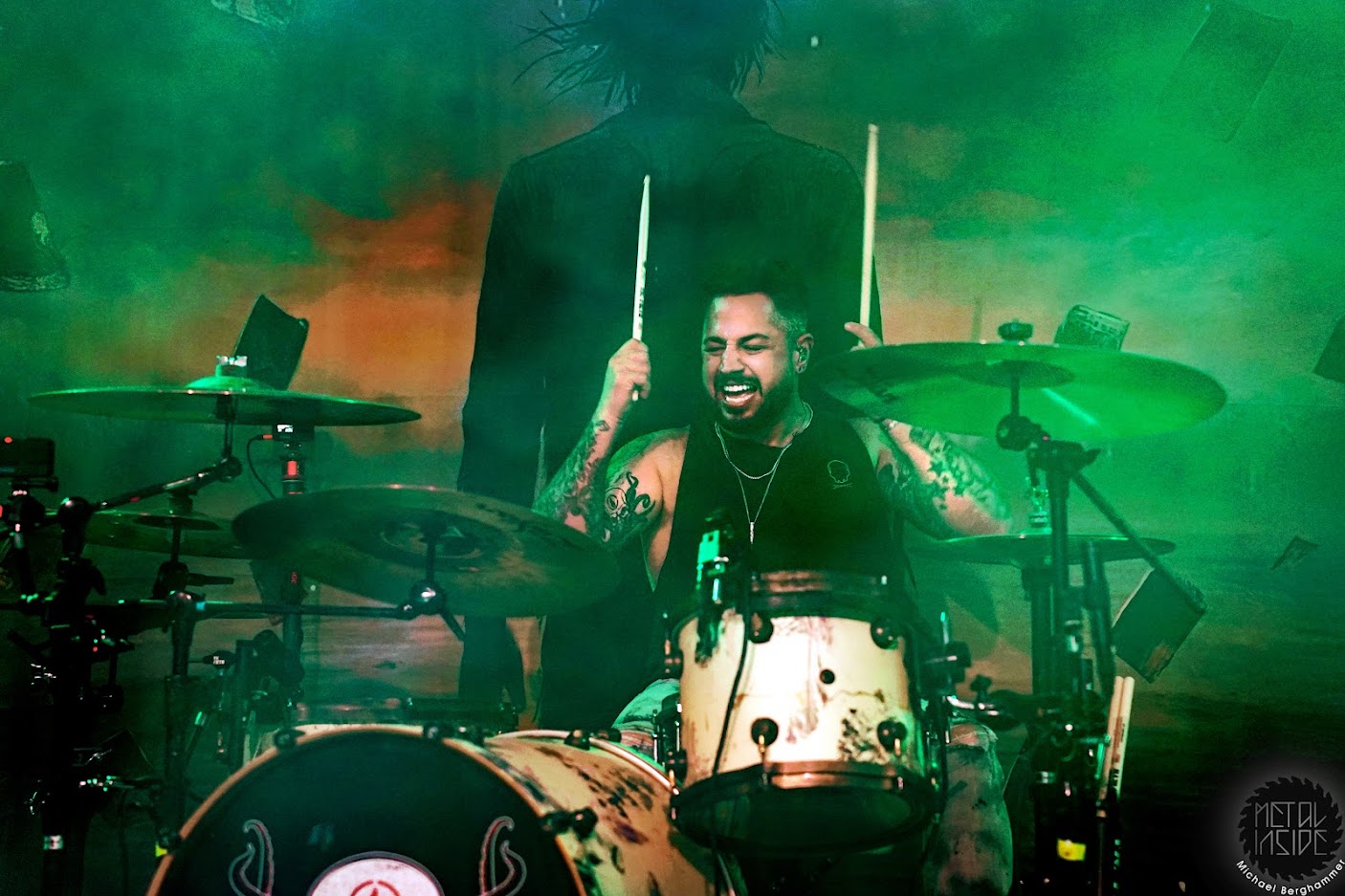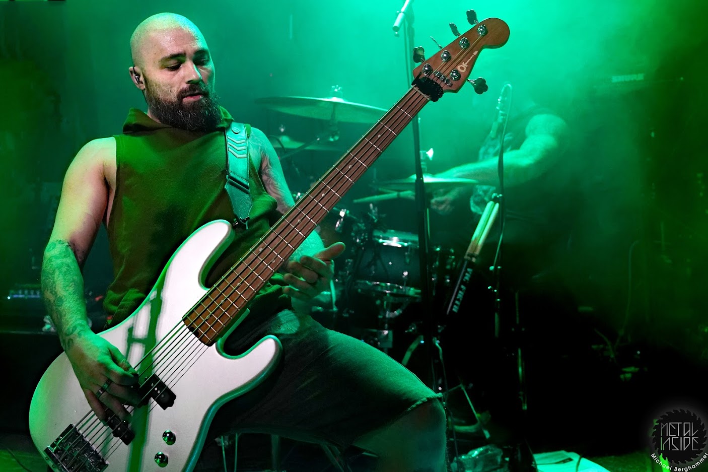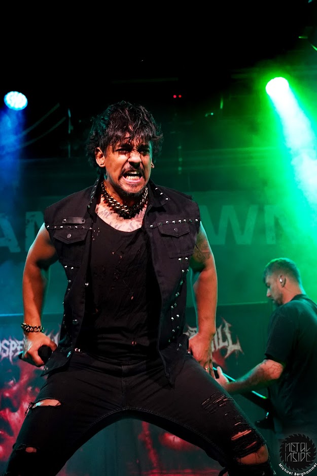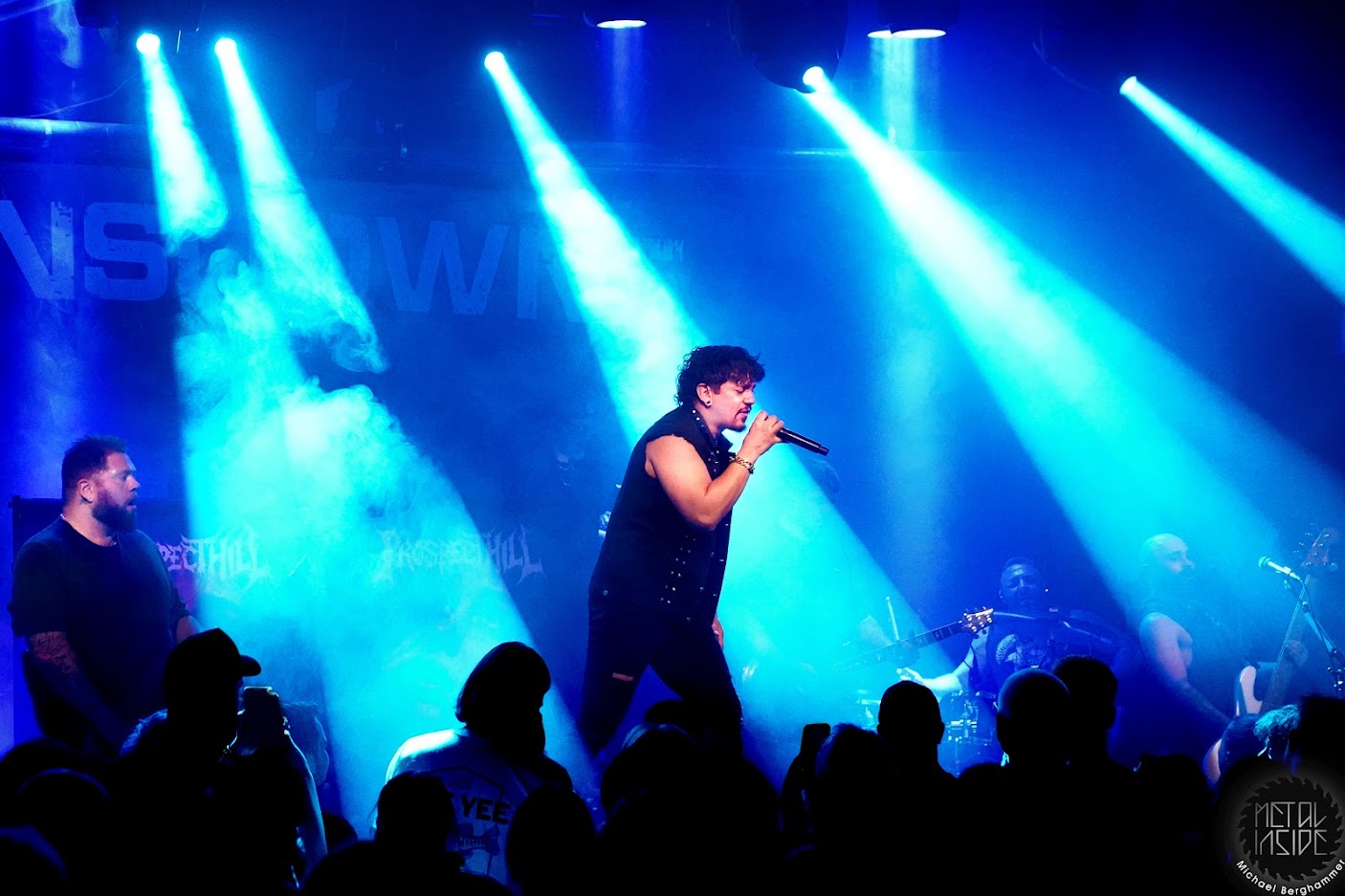 PROSTPECT HILL ist die erste Band und eröffnet den Gig vor einer spärlich gefüllten Halle, weil eben noch viele nicht die Einlasskontrolle passiert haben. Apropos Soundcheck: die Bands, alle drei, haben einen übersteuerten und viel zu lauten Sound. Die Bässe sorgen für Vibrationen in der Location, und generell ist es ohne Hörschutz (den gab es im Bett umsonst) schwer ertragbar. Das mindert den Genuss nicht nur bei der ansonsten motiviert agierenden Vorband, die mit ihrem New Metal gut zum Hauptact passt.