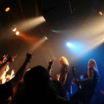 Schon vor dem Konzert wurde am Merchandise Stand ordentlich zu gelangt. Die Fans der Göteborger ahnen natürlich, dass auch heute wieder qualitativ der hochwertigste Melodic Death Metal geboten werden wird, den man sich nur vorstellen kann. Um kurz nach Zehn ertönt das Intro von DARK TRANQULLITY und mit „At The Point Of Ignition“ dicht gefolgt von „The Fatalist“ stellte man getrost fest. Man hatte Recht. Stanne, Sundin und Co. Präsentierten sich bestens gelaunt und preschten ihren fetten Sound in die Menge. Das Ganze wurde wie schon auf dem BANG YOUR HEAD FESTIVAL von einer düsteren und zeitgleich mysteriösen Beamer Show unterstützt, die hinter Schlagzeuger Anders Jivarp auf einer großen Leinwand ablief. Die mittlerweile proppevolle Röhre sang bzw. schrie motiviert jeden Song mit und spätestens bei „Lost To Apathy“ war kein Halten mehr und überall um einen herum flogen die Matten. Ein Hit an den nächsten gereiht vergingen knapp 90 Minuten wie im Flug und dennoch bleiben Perlen wie „Monochromatic Stains“ (schon ewig nicht mehr gespielt) und der Titeltrack der Kultplatte überhaupt „The Gallery“ lange im Gedächtnis. Großartig, dass DARK TRANQUILLITY trotz einer relativ häufigen Anwesenheit im Süddeutschen Raum immer wieder ihre Setlist verändern um ihren Fans möglichst viel Abwechslung zu bieten. Dazu gehörte u.a. auch „Haven“ und „Demage Done“ die kräftig abgefeiert wurden.