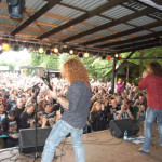 Heideweitzka, watten Fest war das gestern. Zerstörerisch und magisch, auch ganz ohne kosmische Energie. Dass es am zweiten Tag gleich dufte losgehen sollte, konnte (fast) niemand ahnen. Außer den mehreren Hundert Fans, die bereits um High Noon in der Sonne stehen und auf JAMESON RAID warten. Es ist irre, was Mundpropaganda bewirken kann, es ist schier unglaublich, mit welcher Inbrunst HOA-Gänger dabei sind und mit welchem Support sie die Band unterstützen. Sei es, wie es sei. Im Grunde kannte bis vor ein paar Monaten wohl kaum einer die Band (von Super-Experten wie Schumacher von Brocas Helm oder den Roxxcaliburanern und anderen Koryphäen mal abgesehen). Und dennoch stehen sie da und feiern Songs wie „It’s A Crime“ oder eben das abschließende „Seven Days Of Splendour“ ab wie hulle. Ist aber auch verdient, denn wie entspannt die hochklassigen Metal-Rock-NWOBHM-Songs von den – mit Verlaub – Opas dargeboten werden, ist aller, aller Ehren wert. Die Jungs haben sich ihren Erdbeerkuchen später im Backstagebereich redlich verdient. Selten so eine hochklassige Kapelle so früh gesehen. Holt sie wieder, und gebt ihnen schon 2011 eine bessere Spielzeit.