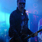 Um 22:45 Uhr schließlich wurde es dann musikalisch etwas dunkler, als der Abend auf THE 69 EYES und somit auf sein Finale zusteuerte. Ungewohnte Klänge bereiteten auf den Start vor, denn das ehemalige Bühnenintro „Little Sister“ war (in konsequenter Fortführung der Vampir-Thematik) durch „Bad Things“, den Titeltrack von „True Blood“, ersetzt worden. Die Helsinki Vampires gaben mit dem Gassenhauer „Devils“ von Anfang an Vollgas und arbeiteten sich von da an munter durch das Material der letzten Dekade, von den unsterblichen „Brandon Lee“ und „The Chair“ über „Velvet Touch“, „Crashing High“, „Rocker“, „Sister Of Charity“ , „Never Say Die“ und „Perfect Skin“ bis zu Songs des jüngsten Silberlings wie „Dead ´n Gone“, „Dead Girls Are Easy“ und „Lips Of Blood“. Und die Finnen hatten auch eine Überraschung im Gepäck: nach einer Dreiviertelstunde Spielzeit wurde plötzlich kurzzeitig die Bühne geräumt, um Platz für die Roadies zu machen, die mit Akustikgitarren und Hockern anrückten. Die E-Gitarren mussten weichen und weiter ging´s mit der halbakustischen Variante von „Feel Berlin“, bei dem das Publikum davon in Kenntnis gesetzt wurde, es gehe dabei nicht um die Stadt, sondern die Stimmung, und man möge es doch bitte auch auf sich respektive Köln beziehen. Im Anschluss folgte der Überraschungshit des Abends, nämlich- man höre und staune- ein Elvis-Cover. „Heartbreak Hotel“ feierte seine Premiere vor etwas über einem Jahr im akustischen Set beim finnischen Helldone-Festival und kam so gut an, dass der Song nun Eingang ins Tour-Set fand. Wer Mühe hat, sich Elvis und Goth´n Roll zusammen in einem Satz vorzustellen, möge sich die Stimme von Jyrki 69 in Erinnerung rufen und sämtliche Bedenken zerstreuen- eine passendere Besetzung wird sich kaum finden, und selbst optisch waren gewissen Parallelen an diesem Abend nicht von der Hand zu weisen (an der Jacke des Sängers hätte vermutlich auch der King seinen Gefallen gefunden). Klasse Idee, super Umsetzung- bitte im Programm behalten! Und zu guter Letzt kam zum Abschluss noch der inzwischen schon fast traditionelle Rausschmeißer „Lost Boys“, bevor der Spaß um Punkt Mitternacht schließlich sein Ende fand. Für die Helsinki Vampires allerdings, so hört man, ging die Party später dann wohl noch weiter, und zwar auf der anderen Rheinseite im Underground- Vampire sind ja schließlich bekanntlich nachtaktiv…