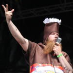 Gegen Mittag erwarteten uns TROLLFEST. Diese Band hat genau drei Vorteile: Erstens, sie sind schwer lustig. Nicht nur das Frontsau Jostein Austvik als Bierflasche verkleidet auf die Bühne kam (welches nach einem Lied durch einem T-Shirt mit „Fat People Are Hard To Kidnap“ getauscht wurde), generell sind sie einfach spaßig anzuhören. Zweitens, passend dazu, sie quaken in einem Lied fröhlich vor sich hin. Drittens: Auch sie haben eine neue CD. Davon wurde natürlich auch brav etwas präsentiert, beispielsweise der Knaller „Die Verdammte Hungersnot“. Auch hier muss ich sagen: Gerne wieder! (ch)