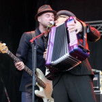 FLOGGING MOLLY hatten die meisten Musiker auf der Bühne, wobei die prominente Platzierung der Geigerin ein wenig störend wirkte, da die doch sehr statische Dame den ein wenig unglücklich platziert war. Ihre Kollegen störten sich daran aber nicht, die hüpften, sprangen und sangen einfach auf beiden Seiten der Bühne und feierten mit den Vainstream-Besuchern, die ein Faible für bierseligen Folk-Punk haben, eine große Party. Funktioniert abends um acht bei einem Festival auf jeden Fall, so auch an diesem Tag.