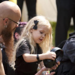 Gestern waren wir auf dem Mittelaltermarkt an der Moritzbastei – heute chillen wir im Heidnischen Dorf in den Tag hinein. Die Mittelalter-Veranstaltungen sind die Oasen im Meer der Oberflächlichkeiten: Nur hier vermischen sich die Sub-Szenen tatsächlich, setzt sich der Cyberpunk neben den Steampunk und isst der Gruftie mit dem Metaller. Und man lächelt nur über die Lästereien des Vorabends, als noch auf dem Campingplatz EBM'ler mit Brikett-Frisur über kulturlose Heavy-Metal-Kiddies geschimpft haben, mittelalterliche Recken über Quetschkommoden und Samtsofas sich die Zunge verbogen haben und die Zwei-Zentner-Elfen gegen Ringelstrümpfe und Textmarker ins Feld gezogen sind. Sackpfeifen sind schon unverstärkt zu laut, um dagegen an zu reden, Sonne macht albern und die kurzen Regenschauer treiben das Publikum unter den wenigen Zelten zusammen. Die Welt könnte so schön sein...