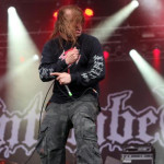 Max Cavalera ist mal richtig mopsig geworden – immer wenn er während des CAVALERA CONSPIRACY-Sets den hüpfenden Animateur machte, kam er gerade mal vom Boden weg und bekam der geneigte Zuschauer Angst um Max’ Knie- und Fußgelenke. Immerhin ist er stimmlich noch voll auf der Höhe und röhrt von „Refuse/ Resist“ bis „Inflikted“ alles gekonnt in die Menge. Bewegungsradius und Kommunikation mit dem Publikum sind dafür recht beschränkt, was aber auch für seine Sidekicks gilt – jeder Beteiligte (es waren auch einige Gastmusiker dabei, u.a. Max’ Sohn an den Drums) schien sich nicht mehr als drei Meter bewegen zu wollen und war mit zwei Gesten zufrieden. So wirkte die Show etwas lahm, gerade im Vergleich mit THE BLACK DAHLIA MURDER oder TERROR, die am Nachmittag die Main Stage rockten. Dem Publikum war das relativ latte, das hatte im Dauerregen seinen Spaß und bangte ordentlich. Mit zwei Promille im Kopf funktioniert der eingängige CAVALERA CONSPIRACY-Sound ja auch bestens.
