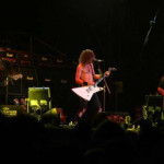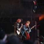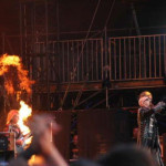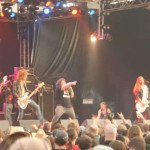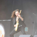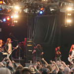 „Raise The Flag“! So beginnt ein magischer Gig unter Sternen. Einen AIRBOURNE Auftritt neutral zu beschreiben ist wirklich nicht einfach. Was soll man tun, wenn das eigene Bein ab dem ersten Ton zuckt, der Kopf wild hin und her wippt und man einfach nur mitgrölen will. Der einzige Schutz vor der totalen Selbstaufgabe ist das Bier in der Hand, das so gut zu dieser Musik passt… Kurz gesagt: AIRBOURNE machen die Nacht (es ist inzwischen 00:45…) zum Tag, rocken den Laden mit allem was sie haben in Grund und Boden. Fachlich formuliert heißt das Australian Pub Rock, auf Deutsch: pure energy! Joel O’Keeffe lässt sich auch von der Dunkelheit nicht abhalten, die Bühnenaufbauten empor zu klettern, um dort sein Solo zu spielen. Und schlägt sich –zur Freude des begeisterten Publikums- mehrere Bierdosen am Kopf auf. Wahrscheinlich kann man nur so den Wahnsinn dieser Band ertragen. Rock on Boyzzzzz! (Jeckyll)
