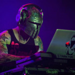 Also begeben wir uns schon Stunden vor MESH in den Kohlrabizirkus. Da steht gerade SCANDY ganz allein auf der Bühne – und ist viel unterhaltsamer, als man das von einem einzigen Techno-DJ allein hinter seinen Reglern erwarten mag. COMBICHRIST-Kopf Andy LaPlegua hat eine Mischung aus der Maske von Boba Fett und einer Discokugel als Helm auf, und bringt die Massen mit ziemlich harter Mucke aus der Schnittmenge von Electro/Techno und einer Prise EBM zum Tanzen. Das beste hatten wir da schon verpasst, bei einem Song gab es dazu eine Rollschuh-Performance auf der Bühne. Im Publikum sehen wir die Cybergothics tanzen gehen. Die Neonlocken leuchten und wippen während an den Armen und Beinen befestigte Lichterketten dafür sorgen, dass man auch sieht, was für Verrenkungen die GLiedmaßen so veranstalten. Da das sicher die dem Metal am weitesten entfernte Spielart der schwarzen Szene ist: Gebt einfach mal bei Youtube „Cybergoth Dance“ ein, dann wisst ihr, was ich meine.