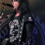 Danach setzte das lange Warten ein. Fast eine geschlagene Stunde dauerte es zum zunehmenden Missfallen des Publikums, bis sich auf der Bühne endlich wieder etwas tat. Minute um Minute kroch dahin, am Ende jeden Lieds aus der Konserve wurde erneut gehofft- vergeblich. Erst gegen 21:15 Uhr rührte sich schließlich etwas auf der Bühne, die Lichter gingen aus, die Videoleinwände erwachten zum Leben und das Intro erklang. Nach und nach erschienen die Herren von W.A.S.P. auf der Bühne, begrüßten die Menge und legten mit „On Your Knees“ los. Weiter ging´s mit „The Torture Never Stops“ und „The Real Me“; und spätestens beim Klassiker „L.O.V.E. Machine” kannte das Publikum kein Halten mehr und brüllte aus Leibeskräften mit. Dabei stand der Höhepunkt des Programms erst noch bevor: anlässlich des dreißigjährigen Bandjubiläums war das Set in drei Teile gegliedert, deren mittleres Drittel, umrahmt von gemischtem alten und neueren Material, aus einer halbstündigen Kurzversion des gefeierten Albumklassikers „The Crimson Idol“ bestand. Unterlegt mit passendem Videomaterial zum Aufstieg und Fall Jonathans startete die Darbietung des Monumentalwerkes mit „The Titanic Overture“ als Intro, es folgten ein Medley aus „The Invisible Boy“, „I Am One“ und „The Gypsy Meets The Boy“, dann „The Idol“ und schließlich, alles nahezu ohne Unterbrechung durchgespielt, mit „The Great Misconceptions Of Me“, das tragische Finale. „The Crimson Idol“ mag inzwischen etliche Jährchen auf dem Buckel haben, rockt aber nach wie vor ungebrochen und zählt definitiv zum Besten, das W.A.S.P. je geschrieben haben. Nach diesem musikalischen Marathon flimmerte, um der guten alten Zeiten zu gedenken und der Band zumindest eine kurze Atempause zu verschaffen, ein kurzes „Spinal Tap“- Gedenkwerbefilmchen über die drei Leinwände, während dem ein Trupp Roadies einen monumental anmutenden Mikrophonständer in Gestalt eines Skeletts auf die Bühne wuchteten, dann ging es mit einem ausgedehnten Schlagzeugsolo weiter. Anschließend wurde das Skelett dem Publikum als Elvis vorgestellt, der welteinzige 10.000-Dollar-Mikrophonständer, der auch den einen oder anderen Trick beherrsche und von Designern entworfen worden sei, die schon bei „Pirates of the Caribbean“ ihre Finger im Spiel hatten. Der Trick, so stellte sich heraus, bestand daraus, dass Elvis neben seiner herkömmlichen Funktion zusätzlich als eine Art Mischung aus Klettergerüst und Schaukelpferd herhalten konnte- nettes Gimmick, keine Frage, aber ob es wirklich 10.000 Dollar wert war, bleibt Ermessenssache. Aber schließlich darf sich auch ein Blackie Lawless im Rahmen seiner finanziellen Möglichkeiten Spielzeug kaufen, warum also nicht ein Schaukelskelett, das nebenbei Mikrophone hält. Mit Elvis´ Verstärkung folgten noch „Heaven´s Hung In Black“ und als Abschlusskracher der Gassenhauer „Blind In Texas“, dann war der Spaß vorbei und die Band verließ unter großem Jubel die Bühne.