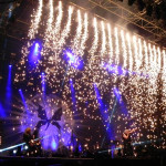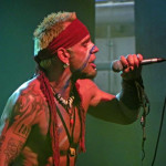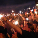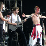 Eine halbe Stunde später war es Zeit für die Headliner HIM, die sich in letzter Zeit auf deutschen Bühnen recht rar gemacht hatten. Die Anhängerschaft hatte dieser Umstand jedoch offensichtlich nicht verkleinert, denn die Zahl der in irgendeiner Form Heartagrams am Leibe tragender Menschen vor der Bühne war beachtlich und als die ersten Klänge des Intros ertönten erstrecke sich ein schwarzes Meer vor der Main Stage übers Festivalgelände. Los ging es mit „All Lips Go Blue“, dem Opener vom aktuellen Album „Tears On Tape“, gefolgt von „Buried Alive By Love“ und „Rip Out The Wings Of A Butterfly“. Die Band war gut aufgelegt, Sänger Ville Valo bester Laune und – zur enormen Erleichterung manch eines Konzertbesuchers, der das alkoholinduzierte Elend an Silvester hatte mit ansehen müssen – allem Anschein nach nüchtern. Für „Hearts At War“ schnappte er sich die Akustikgitarre, der er auch bei den weiteren neuen Songs, „Tears On Tape“ und „Into The Night“ treu blieb, und ließ sich sogar trotz allseits bekannter Wortkargheit zu der Anekdote hinreißen, die Band habe im Umkleideraum Gothic Dance-Moves geübt und dabei großen Spaß gehabt, sich letztendlich aber doch nicht getraut, diese auf der Bühne vor Publikum aufzuführen. Bandklassiker wie „Join Me In Death“, Right Here In My Arms“, „Your Sweet Six Six Six“ und das Chris Isaak-Cover „Wicked Game“ durften nicht fehlen, bevor das gelungene Gastspiel der infernalischen Majestäten mit „When Love And Death Embrace“ ausklang und das Outro „Kiss The Void“ das Ende der Veranstaltung kundtat. Die Menge strömte von dannen – die Privilegierteren ins Hotel, die meisten auf den Campingplatz und ein Teil in den Discohangar oder auf den Mittelaltermarkt, da auf den beiden letztgenannten das Programm trotz fortgeschrittener Stunde noch lange nicht zu Ende war.