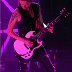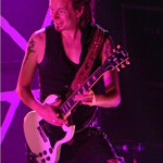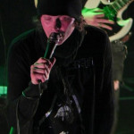 Die halbstündige Umbaupause, die sich nun anschloss, wurde von einigen Zeitgenossen nur zu gerne genutzt, um der Bar zuzustreben und sich mit Getränken zu versorgen – ein Unterfangen, für das durchaus einiges an Zeit einkalkuliert werden musste, denn mittlerweile war der Innenraum des E-Werks proppenvoll. Um 21:15 Uhr erloschen die Lichter und das Bühnenintro ertönte, bevor unter lautstarkem Jubel der Menge die infernalischen Majestäten erschienen und ohne groß zu fackeln mit „All Lips Go Blue“ und dem bewährten Livekracher „Buried Alive By Love“ direkt in die Vollen gingen. Sänger Ville Valo gab sich wortkarg wie meistens, war aber dennoch gut aufgelegt, grinste gutgelaunt in die Runde und lieferte sich Saitenscheinduelle mit Bassist Migé Amour, um diesen anzuspornen. Weiter ging´s mit „(Rip Out) The Wings Of A Butterfly“ und “Right Here In My Arms”, bevor sich nach “Kiss Of Dawn” mit “I Will Be The End Of You” ein weiterer Song vom aktuellen Album “Tears On Tape” anschloss. Nicht fehlen durfte natürlich auch dessen gleichnamiger Titeltrack, bei dem der Sänger zur Akustikgitarre griff. Diese kam – nach Jahren der Bühnenabszenz – überhaupt wieder recht oft zum Einsatz, so beispielsweise auch beim Meilenstein der Band schlechthin, „Join Me In Death“. Für ihre große Gesprächigkeit zwischen einzelnen Songs waren HIM noch nie bekannt gewesen, doch diesmal spielten sie, als sei der Teufel hinter ihnen her und sie bezögen Prügel, wenn sie die vorgesehene Spielzeit auch nur um eine einzige Sekunde überzögen. Während der letzte Ton des vorangegangen Lieds noch nicht ganz verklungen war und sich Valo artig beim Publikum bedankte, wurde in der Mehrzahl der Fälle bereits schon für den nächsten Song eingezählt und nahezu nahtlos weitergemacht. Zeit, um Deutschlands Qualitäten als Biernation zu rühmen, fand sich dann allerdings doch: Ville Valo sprach ein Hoch auf Krombacher Alkoholfrei aus, das es ihm ermögliche zu trinken, ohne in Folge dessen sturzbesoffen zu sein und alles in den Sand zu setzen. Er wusste warum. Wer einem der Silvesterauftritte 2012 / 2013 beigewohnt hatte, wusste es ebenfalls und hätte wahrscheinlich nur gar zu bereitwillig einen ganzen Kasten Krombacher Alkoholfrei für jedes Konzert gespendet, um eine Wiederholung dessen zu vermeiden. Entsprechend bekam die Schleichwerbung des Sängers (der es obendrein sogar wie durch ein Wunder auf der Bühne aushielt, ohne auch nur eine einzige Zigarette zu rauchen) reichlich Applaus. Das Set arbeitete sich durch eine bunte Palette an Material, das zeitlich vom Debütalbum bis hin zur aktuellen „Tears On Tape“ reichte, dabei aber zwei offenbar in Ungnade gefallene Alben völlig aussparte, darunter neben dem schon in der Vergangenheit bereits eher stiefkindlich behandelten „Deep Shadows And Brilliant Highlights“ auch das Vorgängeralbum „Screamworks: Love In Theory And Practice“. Stattdessen setzte die Band auf bewährte Live-Erfolge wie „Soul On Fire“, „Your Sweet Six Six Six“, „It´s All Tears (Drown In This Love)“ und „Wicked Game“, die mit neuen Songs wie „Into The Night“ gemischt wurden. Sehr schön geraten waren auch die Lichteffekte, die der im Vergleich zu vergangenen Touren recht spartanisch dekorierten Bühne räumliche Tiefe gaben. Zum Ende hin wurde sogar eine kurze Jamsession eingelegt, die dann schließlich ins Intro von „Funeral Of Hearts“ mündete, den stimmungsvollen letzten Song des Hauptsets. Mit einem dahin gehauchten „Love to Cologne!“ verschwand Ville Valo von der Bühne, kurz darauf gefolgt vom Rest der Truppe. Lange bitten ließen sie sich aber nicht, als das Publikum lautstark eine Zugabe verlangte – der Sänger erschien als Erster und erklärte, die anderen seien da manchmal etwas schüchtern, ob man vielleicht noch etwas lauter jubeln könne, damit sie sich wieder heraustrauen würden? Der Bitte kam das Publikum nur gar zu gerne nach. Das kommende Lied, so Valo, sei eher ruhig, das mache hoffentlich nichts : „ It´s a little doomy and gloomy – well, you know it´s what we do…”. Viel weiter kam er schon nicht mehr, denn aus der Menge vor der Bühne schallte ihm bereits der Titel „When Love And Death Embrace“ entgegen. „Exactly, that one!“. Und so schloss das Konzert unter lautem Beifall mit getragenen Tönen aus der Anfangszeit der Band nach einer bis auf die letzte Sekunde ausgenutzten Spielzeit von anderthalb Stunden. Das beglückte Publikum hätte gerne noch weitergemacht, drängte dann aber sobald klar war, dass der Spaß nun wirklich zu Ende war, ersatzweise zum Merchandising-Stand, der unter dem Andrang fast zusammenbrach. Bleibt zu hoffen, dass bis zum nächsten Gastspiel nicht wieder fünf Jahre vergehen!