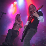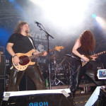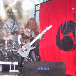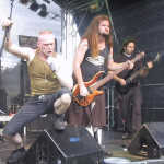 Geile Band mit einem geilen neuen Album ("Turis Fratyr") am Start! EQUILIBRIUM wirkten live noch etwas tapsig, aber musikalisch musste man sich nicht hinter größeren Acts verstecken. Einige Besucher kritisierten die oftmals süßlichen Keyboards (die leider nur vom Band kamen, da die Band heute ohne ihren Tastenmann auskommen musste), die sehr weit in den Vordergrund gemischt wurden, die aber einfach zum positiv gepolten Viking / Pagan / Black Metal gehören. Das Quintett holzte Kracher wie "Die Prophezeiung" oder "Unter Der Eiche" spielerisch akkurat herunter und nur Sänger Helge Stang wirkte bei seinen Ansagen ein wenig unsicher, was aber nicht schlimm war, da er dabei eher noch sympathischer als kopflos unbeholfen herüberkam. Nur der Rest der Band könnte ein wenig mehr aus sich herausgehen, denn dann hätte man mit Bassistin Sandra noch einen weiteren Blickfang parat (Mädels an der Axt sind leider Mangelware…)! Bei der Zugabe "Met" holte der Frontmann einen Gastsänger auf die Bühne ("Unser Besetzungskarussell dreht sich ja immer noch und falls ich mal abtrete…"), der sich dafür auf Anfrage aus dem Publikum gemeldet hatte und der seinen Job gar nicht mal schlecht machte. Gelungener Gig, der nicht nur für mich zu den Highlights des Festivals zählte. (do)