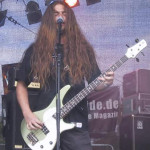 "Macht doch endlich diesen Scheiß aus!" oder "Wenn die noch lahmer spielen, pennen die auf der Bühne ein!" oder inhaltlich ähnliche Aussagen konnte man mit zunehmender Spielzeit der deutschen Doom - Hoffnung aus dem Publikum vernehmen. Stilistisch waren DOOMSHINE auf dem Festival ohne Frage nicht sonderlich geschickt platziert. Trotzdem gaben sich Tim Holz, Sven Podgurski und Co. alle Mühe, die Fans auf ihre Seite zu ziehen. Zwar drang man intensitätsmäßig noch nicht ganz in SOLITUDE AETURNUS, - oder CANDLEMASS - Regionen vor, da das (zugegebenermaßen saugeile) Material, wie etwa "Nothing Hurts But Solitude", ohne große Bewegungen oder Show heruntergespielt wurde; aber einen "verdammten" Achtungserfolg muss man dieser starken Band bestätigen! Doom ist eben eine Richtung, der leider nur ganz wenige Metalheads zugetan sind, daher denke ich, dass DOOMSHINE auf einer dementsprechenden Veranstaltung auch mehr Anerkennung geerntet hätten. Macht aber nix. Doom on!!! (do)
