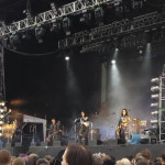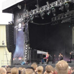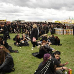 Nachdem wir dann endlich an der Reihe waren, (obwohl die Schlangen sehr lang waren, ging es doch recht zügig voran), und durchgecheckt wurden (nein, wir haben keine verbotenen Gegenstände mitgeführt, wir doch nicht!), sind wir erstmal zum Bierstand, um uns aufzuwärmen. War doch noch recht kühl am frühen Morgen. Danach haben wir uns ein nettes Plätzchen direkt an der Mainstaige gesucht, unsere Decke ausgebreitet und erwartungsvoll der Dinge geharrt, die noch auf uns zukommen sollten. Inzwischen waren noch einige Bekannte eingetroffen, so daß wir ein ganz schönes Grüppchen ergaben.