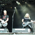Nun gut - ich habe also die Ehre einen Bericht über den lange und groß angekündigten MANOWAR Gig zu schreiben. Wie nicht anders zu erwarten war es brechend voll vor der Bühne - eine Kulisse die sich sehen lassen konnte und die eigentlich jedem Musiker zu ´ner feuchten Hose verhelfen sollte. Als dann mit einer viertelstündigen Verspätung MANOWAR endlich mit eben diesem Song los rockten, sah man von hinten sehr viele ausrastende Bombenleger. Von den zwei Bühnen die mit einem Chor und einem Orchester hätten bestückt sein sollen sah man bislang nichts aber bei "Brothers Of Metal" waren die meisten der Fans sowieso mit Bangen und Gröhlen beschäftigt! Die Show von MANOWAR war ebenso wie immer - Eric agierte über die Bühne und hatte eine Stimmgewalt die seinen jungen Jahren nahe kam während Scott in seiner üblichen Pose den Pudelponny schwang. Meister "immer ernst gucken" DeMaio wirkte hingegen eher zurückhaltend.
