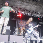 Wenn in der ersten Reihe ein Fan mit einem selbst geschriebenen Pappschild steht und "Let me sing a part of "Hammer Smashed Face"" hochhält, dann werden vermutlich CANNIBAL CORPSE auf der Bühne stehen. Mit einem klaren "We are not allowed to play our old songs�" lies unser aller Corpsegrinder dann auch gleich sämtliche Hoffnungen auf einen kleinen "Ausrutscher" der Band zerplatzen. Aber das machte nix, denn auch mit "legalen" Songs wie "Staring Through The Eyes Of The Dead", "Pounded Into Dust" oder dem geilen "Sentenced To Burn" machten die Jungs ein echtes Fass auf, das keinen Anhänger der Kannibalen enttäuscht haben dürfte. Allein schon die unglaublichen Propellerbangorgien aller Bandmitglieder waren wie immer nicht von dieser Welt und musikalisch präsentierte man sich auch hier wie das viel zitierte Schweizer Uhrwerk. CANNIBAL CORPSE haben auch auf dem "Party.San" bewiesen, dass sie den Ruf als eine der besten extremen Livebands der Welt ohne Frage verdient haben. Klasse!