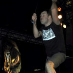 Und wieder ging es dem Köpfchen schlecht, schnell ist er mit einer kleinen 22er-Überraschung auf dem Weg der Besserung. Den Rest erledigen wieder mal die Franken. Diesmal sind�s FINAL BREATH, die der versoffenen Birne den Rest-Alkohol rausprügeln und Platz für Nachschub machen. Allerdings gibt�s einen extremen Kritikpunkt: Dieser Sänger, dieser Eumel hat viel zu guten Laune für so früh. Mit seligem Lächeln hüpft, rennt und springt der Front-Flummi über die Bretter - und röhrt dabei wie ein Elch. Oft zu Songs der neuen Scheibe "Let Me Be Your Tank" - die auch live mächtig Potenz in der Hose haben. Sie musizierten also, die netten Menschen aus dem Süden, von denen einer aussah, wie ein teuflischer Chuck� - und bekamen jede Menge Zuneigung zurück. Viele Leute vor der Bühne, lautstarke Sprechchöre,die es wohl bei der DJK Würzburg lange nicht mehr gab - und vor allem: viel geschüttelte Metall-Rüben. "PartySan, ich will ein Kind von Dir", freute sich Eumelchen - und wir fragen in neun Monaten mal nach. (memme)