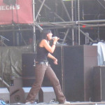 Im letzten Jahr noch, zu später Stunde, im damals relativ kleinen SOUND FOR NATURE Zelt durften THE CRÜXSHADOWS diesmal zur Belohnung auf der Hauptbühne ran. Und die Band um ihren sympathischen Frontman Rogue zeigte mit ihrem synthiegeschwängerten Dark Wave Pop (erinnert mitunter an ältere DEPECHE MODE Geschichten) einen, nicht nur wegen der optisch in aufreizendem Fummel auftretenden zwei Geigerinnen, durchaus gelungenen Gig. Viele Fans schienen zu früher Stunden sogar extra deshalb vor die Bühne gekommen zu sein. Die Stimmung war recht passabel (besser als bei so manchen Acts danach!) und als der Sänger im dicken schwarzen Wollpulli bei rund 30 Grad leutselig durchs Publikum schlenderte und dabei souverän seine Songs durchzog, konnte man spüren, hier könnte etwas herausragendes für die Szene entstehen.