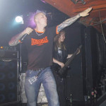 Aber es gab auch Überraschungen: Die Engländer DAM nämlich, die die ganze Chose eröffneten. Death Metal mit leichten Carcass-Einflüssen? Jedenfalls kam die Band wesentlich verträglicher rüber als auf ihrer insgesamt vierten Veröffentlichung "PURITY: THE DARWINIAN PARADOX". Vielleicht lag das an der optischen Anmutung der Band, denn Sänger Nathan wirkte eher wie Greg Greffin mit Klasse auf Schul-Landheim-Ausflug - vor allem der neue (und junge) Bassist Dan (seit August in der Band) machte noch einen sehr schhüchternen Eindruck. Macht aber nüscht, DAM räumten mit Song wie "No God With Me" gut auf - und sorgte beim noch nicht recht zahlreich aufmerksamen Publikum für erste - positive - Reaktionen.