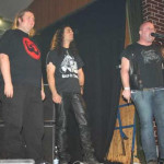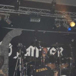 Danach musste ich mich allen Ernstes fragen, welche Kirmesband die Veranstalter da aufgefahren hatten. Ich hatte von SKULL VIEW bis zu dem Zeitpunkt nur vom Hörensagen mitbekommen, aber da die Band anscheinend schneidenden US Metal praktizieren sollte, war ich recht gespannt darauf. Aber was ich zu sehen bekam, war eine durchschnittliche Performance mit Material, das zwar teilweise sehr gut war, aber niemals von SKULL VIEW geschrieben wurde. Oder anders: würde es staatliche Verfolgung von geklauten Riffs und Melodielinien geben, dann wären die Jungs in Ketten aus dem Saal geführt worden. Bei jedem Song hatte ich gut zu tun, die verschiedenen Versatzstücke dem jeweiligen Original zuzuordnen und kam damit kaum noch nach. Die Jungs lieferten zwar eine nette Performance ab und konnten auch ein paar Fans mobilisieren, aber ich hatte den Eindruck, dass die meisten Anwesenden, meine Wenigkeit eingeschlossen, nicht mit dem Material der Band vertraut waren. Nach dem Gig hatte ich auch nicht unbedingt das Bedürfnis, dieses nachholen zu wollen. Eine annehmbare "Tribute" - Band, aber wohl auch eine Kapelle, die der zweiten Liga nicht so schnell entwachsen wird. (do)