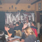 Bandchef Tarek "MS" Maghary begrüßte zusammen mit den beiden Anwesenden Bandmitgliedern, Rhythmusgitarrist Björn Daigger und Schlagzeuger Michael Gräter die Anwesenden und entschuldigte zugleiche das Fehlen von Lead-Gitarrist Rolf Munkes und Bassist Marcus Bielenberg. Besonders schmerzlich, die erst am Vormittag erfolgte kurzfristige Absage von Produzent Stefan Kaufmann (U.D.O., Accept) - der hängt laut Aussage in den Vorbereitungen für eine U.D.O. Tour. Hier ein paar Fragen zu dem neusten MAJESTY-Output loszuwerden wäre besonders interessant geworden. Nichts desto trotz gab es danach erst mal ein paar Bierchen und dann die neue Scheibe "Hellforces" in vernünftiger Lautstärke mit nachfolgender Pressekonferenz.