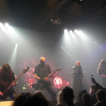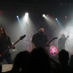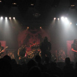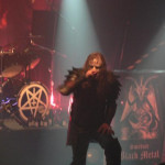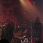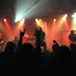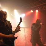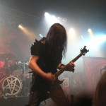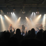 Nach einem kurzen Bombast - Intro legten DARK FUNERAL erwartungsgemäß mit dem Hammer "King Antichrist" los, und sofort fielen einem die irgendwo zwischen Kitsch und Kult angesiedelten Plastikuniformen auf, die jedes der Bandmitglieder schmückten. Nicht ganz passend war auch der eher lahme Bewegungsablauf der Musiker, der nicht wirklich zum ultraschnellen Spiel passte. Das war aber immer schon ein kleines Manko bei den ansonsten richtig fetten Schweden, die wieder mal eine herrliche Soundwand zelebrierten. Das Hauptaugenmerk galt wie immer nicht nur Sänger Emperor Magus Caligula, sondern auch Drummer Matte Modin, der üblicherweise eine Mordsarbeit hinter seinem Kit verrichtete und dabei kaum eine Miene verzog, bzw. breit grinste. Amüsant war auch die große Anzahl an Bierpullen, die sich gegen Ende des Gigs vor dem Drumkit angesammelt hatte, die allerdings von allen Bands zusammen stammte. Ca. 80 Minuten dauerte das Inferno, wobei das Material der letzten beiden Alben "Diabolis Interium" und natürlich "Attera Totus Sanctus" den Löwenanteil bildete. Nach der lautstark geforderten Hymne "Hail Murder" und anschließenden drei Zugaben war dann Schicht im dunklen Schacht, aber obwohl DARK FUNERAL eine echt gute Show boten, wirkte das Publikum auch hier seltsam passiv und wenig mitgehend. Man hatte stellenweise das Gefühl, dass die Leute kaum interessiert an den Bands waren. Auch an den Merchandiser - Ständen war am Ende nicht viel Betrieb zu vermelden, woran aber auch die zwar normalen, aber nicht unbedingt günstigen Preise Schuld waren. Es folgte ein gut einstündiger Fußmarsch durch Niedersachsens Landeshauptstadt, aber das ist eine andere Geschichte…
