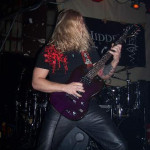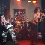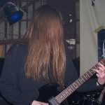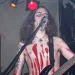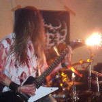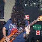 Den Anfang, ja den machen MODER aus der Bremer Gegend. Sie absolvieren neben diesem Auftritt zwei weitere im Anschluss (Bremen und Berlin) - und brauchen diese Erfahrung unbedingt. Musikalisch gehen die Jungs sehr klassisch zu Werke - in Dreierbesetzung mischen sie oldschooligen Death Metal mit jeder Menge Thrash und ein wenig Black Metal. Und Songs wie der Lichtbringer haben durchaus Potential, die einzelnen Instrumente machen ebenfalls einen ansprechenden Eindruck, vor allem Sodom-Fanatiker sollten am brummeligen Bass ihren Spaß haben. Doch die Kunstblut-bekleckerten Jünglinge machen einfach einen zu artigen, zu grünen Eindruck. Nicht nur, dass das Intro einfach nicht starten will. Der ständig Mineralwasser süppelnde Fronter hat ein Haarproblem, jedenfalls ist er während der unablässig mit dem Legen selbiger beschäftigt, anstatt ein wenig mehr mit dem Publikum zu kommunizeren und die fallende Stecknadel zu übertönen. Kollege Gitarrist trägt eine Brille, die aber kaum zu erkennen ist, weil die langen Haare sie beim hektischen Bangen zumeist überdecken. Irgendwie wirkt die Band live - trotz des kleinen Feuerwerk-Effekts mit der Funken sprühenden Gitarre - noch ein wenig unausgegoren - aber was nicht ist, sollte noch werden.