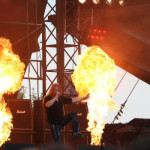 Mit POWERWOLF ging die erste Band des Tages auf die Bühne. Trotz der eigentlichen Frühstückszeit war die Stimmung bereits von Beginn an ausgelassen. Und auch die schon sehr warmen Temperaturen taten ihr übriges, so dass die 5 auf Vampire geschminkten und schwarz angezogenen Musiker doch schnell ins Schwitzen kamen. Trotz eines etwas erkälteten Attila Dorn wurden Songs wie »Mr. Sinister«, »We Came To Take Your Souls« und »Demons & Diamonds« gut angenommen. Auch die kleinen Versprecher des sonst im guten Deutsch sprechenden rumänischen Frontmannes Attila Dorn wie »Ich bin verkältet« oder auch »Ich habe Blut im Alkohol« kamen so sympathisch rüber, so dass als gleich eine lockere Stimmung herrschte. Bei der Hitze konnte einem der als Wolf verkleideter Roadie auf die Bühne schon fast ein wenig Leid tun, so kam er denn auch mehr niedlich und Comedy mäßig rüber denn gefährlich. Spätestens beim Ohrwurm »Kiss Of The Copra King« konnten die meisten dann auch ordentlich mitsingen. Mit »Lucifer In Starlight« wurde die Show leider schon beendet.