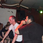 Ohne Umbaupause machten dann HOODS UP weiter, die ich zum ersten Mal live sah. Das Quartett ging etwas old schooliger zur Sache, als Einflüsse haben sie ja auch Klassiker wie MINOR THREAT angegeben. Es gab ein paar Coversongs, bei denen die Luft brannte, während sich ein Großteil der Anwesenden bei den regulären HOODS UP-Songs zurückhielt. Außer zwei der STEP BY STEP-Jungs, die permanent in Bewegung waren (danke nochmal für das Brille-vom-Kopf-treten, Niko!). Sänger Alex machte in einigen deutlichen Ansagen seine Position klar und zog gegen das ganze Tough Guy-Gehabe, die Kung-Fu-Attacken im Pit und einige andere Dinge ordentlich vom Leder. Gut so, kann ich da nur sagen! HC zockten sie auch noch, die Jungs, und konnten sowohl mit den sauber gecoverten Songs als auch den eigenen Attacken überzeugen. Highlight war das Duett mit GCF-Sänger Mr. Issa, bei dem der Mob richtig tobte. Feiner Auftritt!