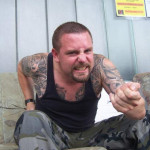 Ein nicht weiter zu nennendes Mitglied der Grind-Core-Deather VERY WICKED hatte viel Spaß. Der von oben bis unten gepeikerte Kollege spielt nicht nur bedrülnt auch Fußball, er war zu späterer Stund nicht mehr recht eloquent. Aber merke: Verlust der Muttersprache ist nicht schlimm, wenn das Opfer wenigstens fröhlich dazu grient.