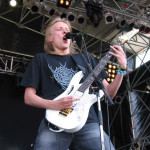 Soweit so gut - was aber gar nicht so gut war: man hatte gehörig Verspätung, warum auch immer. Der HAMMERFALL Gig fing ungeheure 1:15 Stunden später an als geplant. Dass ist schon starker Tobak und prinzipiell verbesserungswürdig. HAMMERFALL selbst hatten einen aufwendigen Bühnenaufbau aufgefahren und schienen pyrotechnisch ihren skandinavischen Brüdern von LORDI vom Vortag in nichts nachstehen zu wollen. Auch der Sound erwies sich wieder als extrem gut - zumindest Bühnenmittig, nur komischerweise etwas leiser als bei den Bands zuvor. Nach dem Beginn mit Tracks wie "Secrets”, "Let The Hammer Fall", "Legacy Of Kings", "Hammer Of Justice” und "Blood Bound" wurde der Übergang zu einem eher recht unspektakulären Schlagzeugsolo etwas verhauen. Danach legten die Schweden mit "Fury Of The Wild", "Heeding The Call", dem Überhammer "Stone Cold” und der Bandhymne "Hammerfall” richtig los um sich unvermittelt von ihren Fans zu verabschieden. Das da noch was kommen musste war klar und kurz danach kam der stimmlich ausgezeichnet aufgelegte Joacim Cans wieder auf die Bühne um mit "Templars Of Steel” und "The Fire Burns Forever” (neuer Songs, komponiert für die Leichtathletik Europameisterschaft in Schweden) den Fans ihre Extraportion Metal zu geben. Die zweite Zugabe in Form des Top-Ten-Hits "Hearts On Fire" wurde dann im explosiven Glimmerregen von der anwesenden HAMMERFALL-Fraktion enthusiastisch hinausgebrüllt. Jetzt noch ein paar True-Bierchen und ab auf den Zeltplatz - Party On Garth.