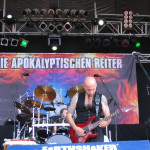 Zu den Livequalitäten der REITER braucht man kaum noch ein Wort zu verlieren. Schon nach der kurzen Frage nach den angeblich "faulen Fans" waren alle Hände oben und die Party der APOKALYPTISCHEN REITER konnte beginnen. Schon kurz darauf gab es zu "Du Kleiner Wicht" den ersten richtigen Moshpit des Festivaltages. Mit "Barmherzigkeit" und "Sehnsucht" wurde die Reitermania weiter angefacht, bevor mit einem von Fuchs & Co. mit jeweils einer Trommel unterstütztem Schlagzeugsolo etwas die Luft rausgenommen wurde. Mit "Silence Of Sorrow" endete dann der nächste Hit im Gitarrengewitter und im Moshpit. Zu "Die Sonne Scheint" durfte dann ein weiblicher Fan im hübschen Bikinioberteil zur Freude des Publikums die Bühnenperformance der APOKALYPTISCHEN REITER bereichern - Animation pur. Zur "Reitermania" war dann vorne niemand mehr zu halten. Als Überraschung gab es noch mit "Riders On The Storm" den Titeltrack des nächsten Albums zu hören - ein typisch flotter APO-Track mit laut/leis-Dynamik und einem epischen, fast schon Melodic Metal Refrain. Den Schlusspunkt setzte dann ein kultiges "Ghostriders In The Sky". DIE APOKALYPTISCHEN REITER live wie immer eine Bank.