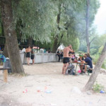Dann wieder ab zum "Strand" Höllengeil - heute noch mehr Badeinseln und Planschutensilien. Die Insel ist belegt - mitsamt Pavillion und Bier. Irgendwo am Flussufer kommt ein Metalhead auf die Idee