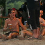 Gegen Nachmittag zieht sich dann der Himmel zu und es fängt sogar leicht an zu regnen. Irgendwie schaffen wir es jetzt auch zum ersten mal runter an die Strandbar, was sich später als fateler Fehler herausstellen wird. :-) Hier unten ist das Wasser was noch schöner. Von Links kommt ein Seitenarm der Soca und mündet im großen Flussbett. Das Ufer ist teilweise nicht steinig sondern besteht aus Sand. Die Strandbar macht was her und aus großen Boxen ertönt die richtige Party Rock Mucke: Von Metallica über Europe bis hin zu Twisted Sister und Skid Row. Da schecken auch die ( ich habe vergessen wie viele ) Caipis für 3,50 Euro. Hier muss mal gesagt werden das die jungen Kerle hinter der Bar mehrere mal bewusst versuchen zu bescheissen. Sowohl bei mir als auch meinem Kumpel