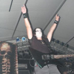 ERODED gibt es erst seit 2004, Kollege P. arbeitet sonst bei einer renommierten Plattenfirma und ist eigentlich ganz allein, wären da nicht zwei Aushilfsmucker. Was das mit dem Eröffnungsauftritt des 2006er-PSOAs zu tun hat? Keine Ahnung. Denn zum einen machen die Bochumer old-school-Schweden-Tod as fuck, zum anderen fällt es nicht ins Gewicht, dass Mastermind P. auf Einmal-Musiker zurückgreifen muss. Der Gig ist nämlich nicht nur old school wie Hölle, sondern auch geil (auch, wenn das einige Menschen mit moderneren Adern nicht so hören), obwohl sie eigentlich gar nicht genug Songs für einen ganzen Auftritt haben und flugs noch was nachkomponieren mussten. Witzig: Zwar haben ERODED nur eine Split mit Paganizer ("Black Empire", 7 Inch) und ein Demo (ausverkauft, The Pts Of Gruesome Torment"), trotzdem künden sie lauthals an: "Wir spielen mal was Altes"! Als ob sie jemals in dieser Dreiviertelstunde was anderes gemacht hätten. Und nachdem alle da waren, dankt es das Zelt - inzwischen nach schwerem Einlass gut gefüllt - mit enormer Resonanz. (memme)