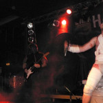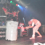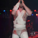 Punkt 20 Uhr in der Halle, starteten auch gleich die Deutschrocker von HÄMATOM mit ihrem grenzdebilen Mix aus RAMMSTEIN - Riffs, "Neue Deutsche Härte" - Stangenware und einen Schuss Humor, der sich unter Anderem in eingebauten Kinderliedern ("Butzemann" - Hilfe!), möglichst witzig - peinlichem Stageacting und gruseligen Kostümen äußerte, die von eingewickelter, blutbeschmierter Mumie über Vogelscheuche bis zum altrömischen Offizier mit abgeschnittenen Autoreifen als Schulterschutz reichten. Dazu ein Sänger (sprich: die Mumie), der den Psychopaten mimte, mit Stöcken auf alten, leeren Fässern rumdrosch und versuchte, das etwas verdutzt guckende Publikum zum Mitmachen zu bewegen. Es wird gemunkelt, dass die Leute in den ersten drei Reihen, die ganz angetan schienen, später mit argen Demenzerscheinungen gesichtet wurden. Dazu passend der Titel der aktuellen Eigenproduktion: "Nein"!