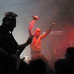 Dass fast alle Fans wegen der REITER da waren, war sowieso klar, und mit dem neuen Hammerwerk "Riders On The Storm" hat man nicht nur ein musikalisches Statement in der Hinterhand, sondern generell, wie eh und je, die Sympathien der Fans auf seiner Seite. Darum war es auch nicht verwunderlich, dass Fuchs und Co. bereits mit dem erstklassigen Opener ihrer Show, "Friede Sei Mit Dir", ein echtes Fass aufmachten. Ich persönlich fand die Band sogar noch um Einiges stärker als im Vorjahr! Für ein Dauergrinsen gut war der neue Käfig, in dem sich Dr. Pest verschanzt hatte, und in welchem er im späteren Verlauf der Show noch von einem Mädel besucht werden sollte… nicht zu vergessen die freundliche Geste von Fuchs, gegen Ende der Show noch seinen nackten Popo ins Publikum zu drehen, aus dem… ähm… nicht gerade die Sonne schien! Die Setlist bot indes nur wenig bis gar keinen Platz für Überraschungen, denn neben einigen Stücken des neuen Albums kamen natürlich langjährige Standards wie "We Will Never Die", "Reitermania" oder "Genghis Khan" zum Einsatz, die von einem coolen Drumsolo ergänzt wurden. In Sachen Stimmung, Mitgrölkompatibilität und Schweißtrieb waren die REITER wieder allererste Sahne, wenn auch "nur" weitestgehend routiniert. Trotzdem immer wieder gerne!!!
