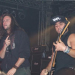 Im Vergleich zu dem Orkan, den UNEARTH in den folgenden 45 Minuten entfachen würden, sollte sich der Auftritt von TWELVE TRIBES als laue Sommerbrise entpuppen. Die Bostoner Mucker hatten derbe Bock und gaben vom Start weg 110%, allen voran der in ein true 80er-Outfit gekleidete Ken an der zweiten Gitarre und Sänger Trevor. Beide posten, was das Zeug hält, suchten den Kontakt zu den ersten (dauermoshenden) Reihen und hatten mächtig Spass inne Backen. Buz, der andere Gitarrist, schien sich etwas im Hintergrund zu halten, taute am im Verlaufe der ersten Songs auf und spätestens als er sich während eines Songs hinhockte und einem Fan das Bier austrank, war das Eis gebrochen. Einzig Basser John hielt sich zurück, wie es Viersaiter nunmal tun und konzentrierte sich darauf, die Songs effektiv nach vorne zu treiben, egal ob es sich dabei um Material vom neuen, sehr Metal-lastigen Album "In The Eyes Of Fire" oder Kracher von "The Oncoming Storm" handelte. Für das Publikum machte das keinen Unterschied, es feierte einfach alles ab, was UNEARTH an diesem Abend spielten, ließ sich zu einem großen Moshpit verleihten, kletterte im Sekundentakt auf die Bühne und ließ auch die obligatorischen Circle Pits nicht aus. Vor lauter Übermut ließen sich Ken (der zwischendurch von einem Roadie zum Trichtersaufen animiert wurde) und Buz von den Fans Richtung Theke tragen, wo sie einen kompletten Song spielten, um dann mitten im nächsten wieder zurück zur Bühne getragen zu werden. Soviel Energie und gute Laune versprühen nur wenig Bands, einfach unglaublich! Mit diesem Auftritt haben sich UNEARTH in den Kreis der ganz großen Live-Bands gespielt. Hammer!
