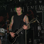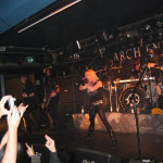 ARCH ENEMY legen mit dem Hit ihres letzten Albums "Nemesis" los das die Hütte brannte - und das Niveau gab auch den Takt für die nächsten 90 Minuten an. Vor der Bühne ist es auf einmal proppevoll und manch einer muss erst mal um ein paar Quadratzentimeter Luft zum überleben kämpfen. "Burning Angel", "Dead Eyes See No Future", "Enemy Within” und "My Apocalypse” - ARCH ENEMY haben mittlerweile einiges an Hits im Gepäck und ließen sie auch ungebremst auf das partyhungrige Publikum los. Der Moshpit der vorherigen Auftrittes hatte nur kurz Pause, die Temperatur in dem Club stieg zusehends an. Die Fans nahmen alle Vorgaben von Sängerin Angela Gossow dankend auf - und ob die Dame dabei immer fehlerfrei ins Mikro brüllte ist bei solch einer Performance sowieso zweitrangig. Der klasse Sound im Colos-Saal und ein Gitarrenduo Michael Amott / Fredrik "Kulle" Åkesson mit ihren abwechslungsreichen Variationen taten dann ein übriges um die Stimmung über die ganze Spielzeit hoch zu halten. Sogar das soundmäßig untermalte Drumsolo war eines der besseren Sorte. Mit "The Immortal" und "Bury Me An Angel" wurden Altfans gekonnt bedient. Zwischendurch war die Gesangstimme dann wohl ein wenig nach hinten gemischt, kam aber rechtzeitig zu "Fields Of Desolation", "Silent Wars", "Skeleton Dance" und "Dead Bury Their Dead" wieder voll rüber. Hinten raus konnte dann (nach einem wieder mal erstklassigen Gitarresolo vom Meister selbst) mit dem Wages Of Sin-Hit "Ravenous” und den Zugaben "The First Deadly Sin” sowie dem mitgegröltem "We Will Rise” ja sowieso nichts mehr schief gehen. ARCH ENEMY boten die erwartet gute Kost - 90 Minuten Power mit einem überragenden Gitarristen und einer klasse Bandleistung. Und Frau Gossow macht sich nicht nur optisch gut, sondern sie ist Live definitiv ein äußerst engagierter Pluspunkt für die Schweden.